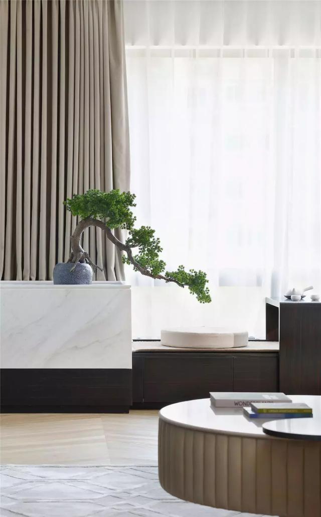 如果飄窗面積比較大,同時景觀比較好的話,建議設(shè)計成地臺的形式。在慵懶的午后,或品茗或小憩都很愜意呢!
