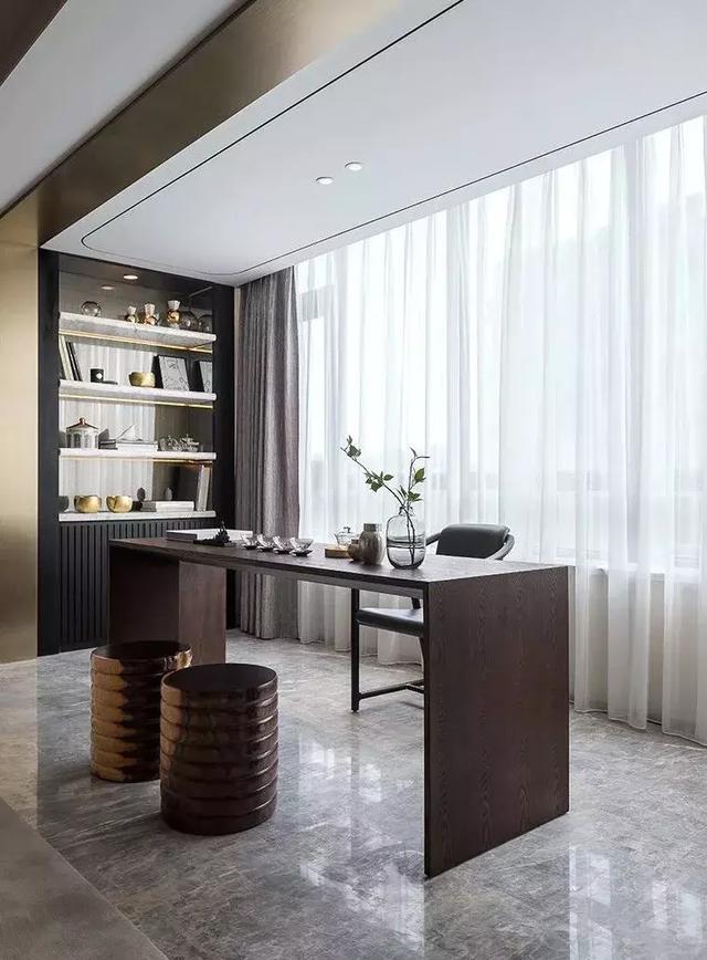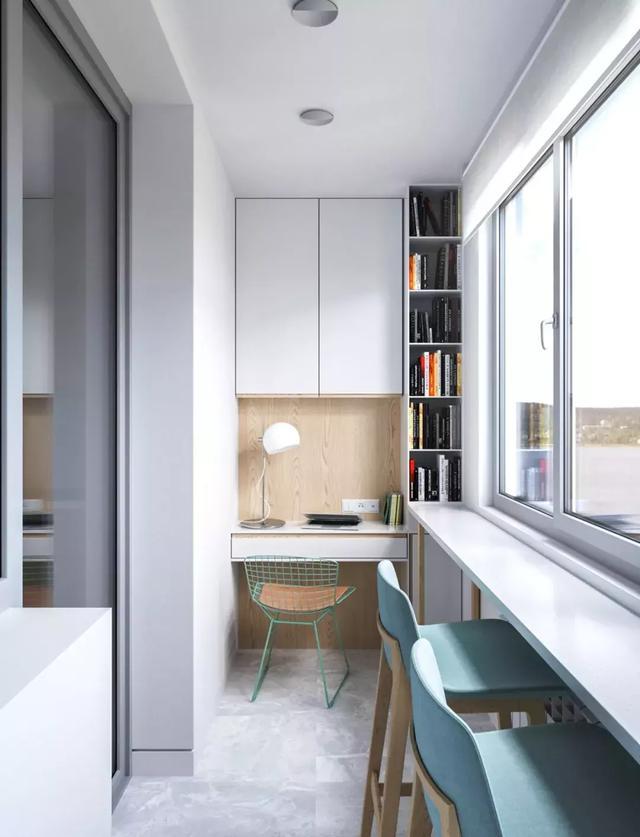 客餐廳等開放式的陽臺可以設(shè)計成書房、茶室、休閑區(qū)等,彰顯一種時尚溫馨的感覺。