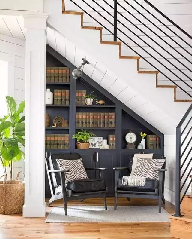 其實,樓梯下方的空間還是很實用的,比如說可以把樓梯角落設(shè)計成小書房、小衣帽間等,任何一款功能設(shè)計都能讓你樂翻天。