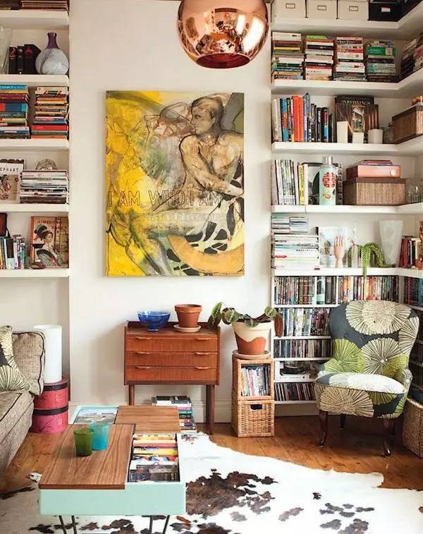 非常喜歡這種矮書(shū)架+畫(huà)的組合