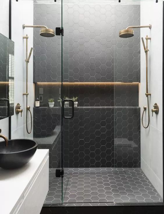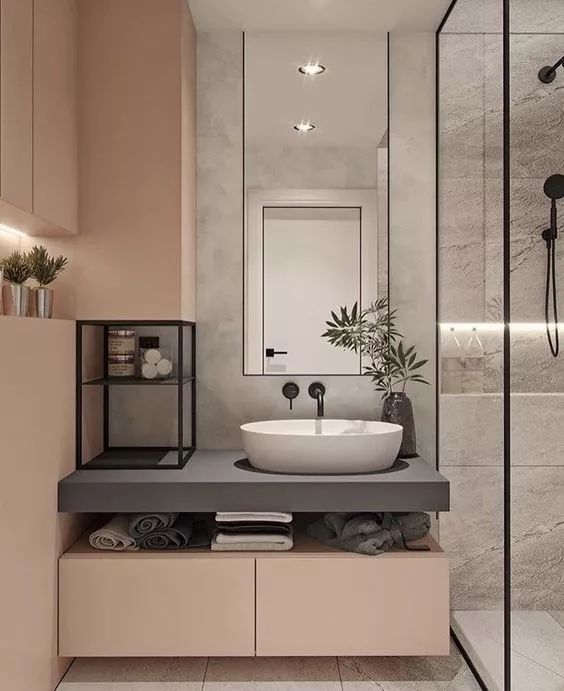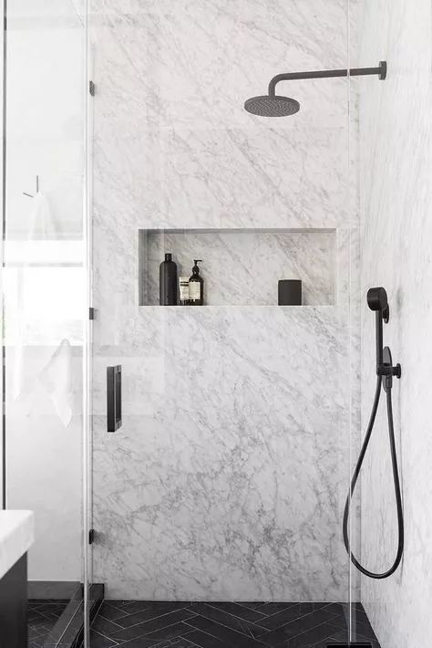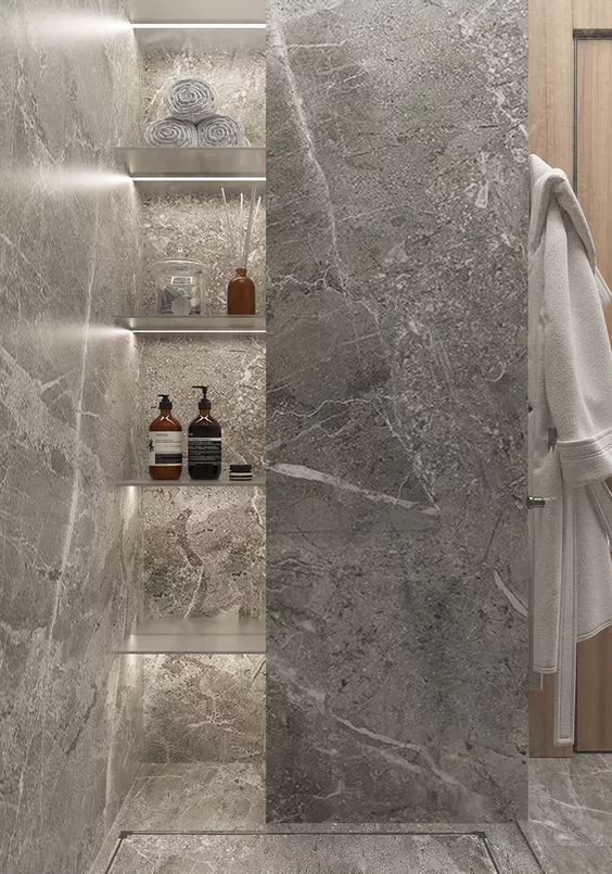 壁龕在衛(wèi)浴間運(yùn)用尤其多,洗浴用品有了容身之處,又省去了收納用具。設(shè)計(jì)時(shí)造型上還可以與墻面融合在一起,作為收納架or收納板,鐵的怕生銹,木的怕掉色,只有壁龕才能拯救潮濕的衛(wèi)生間。