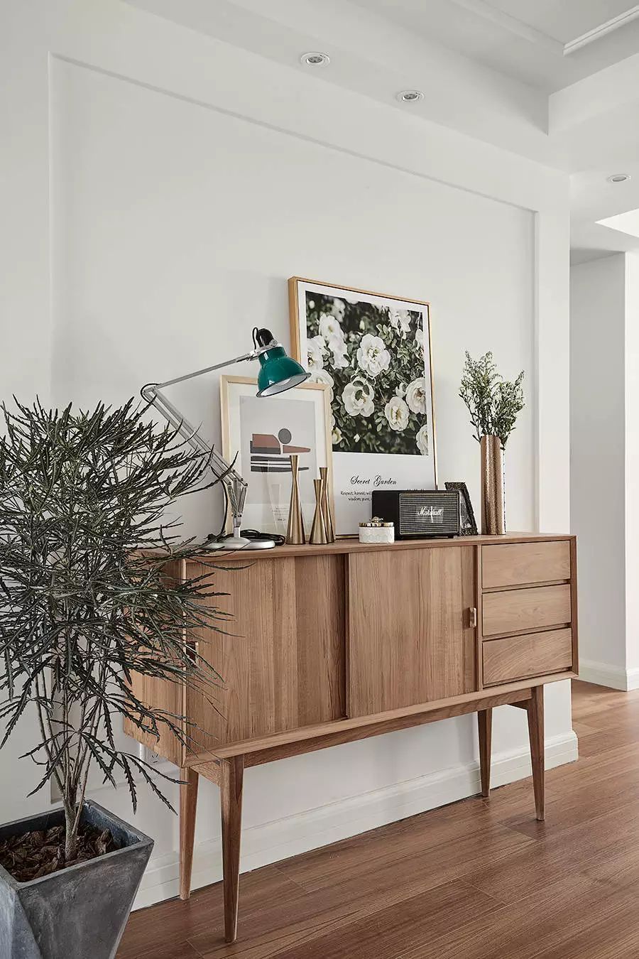 玄關(guān)雖然在家居中面積不大,卻是進(jìn)出的必經(jīng)之路,同時也是展示家居風(fēng)格的點(diǎn)睛之處。比起進(jìn)門后鞋子踢得滿地都是,不如在玄關(guān)設(shè)置鞋柜,這類設(shè)計低調(diào)實(shí)用。也可以掛幾幅有意寓的掛畫,給初次到來的朋友一些小小的驚喜。