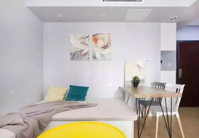▲選用較低矮的餐桌椅家具,餐廳留有一定的走動空間,掛畫組成了餐廳的背景墻,藝術感十足。一邊是柜子組合榻榻米,更加合理的利用了空間 ,增加了家里的儲物空間。