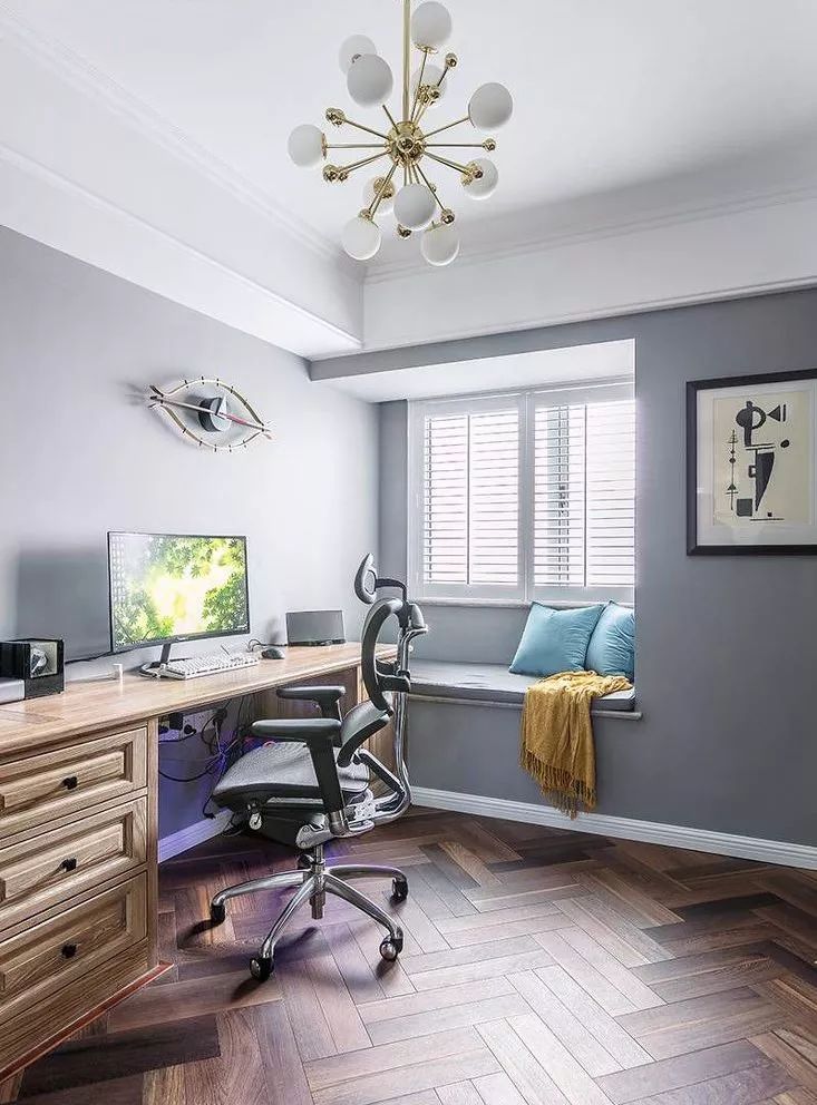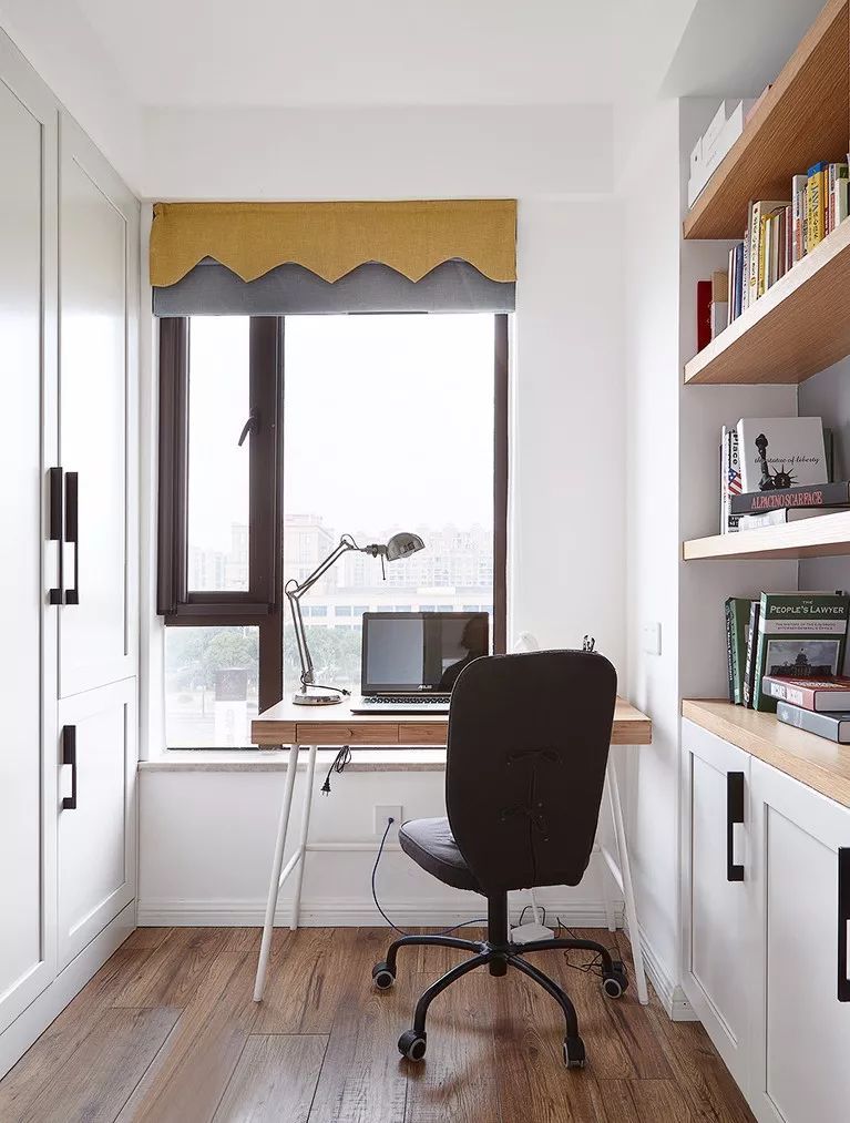 對于很多家庭來說,由于空間有限,書房成了“奢侈品”。這種情況下,不妨將飄窗改造成讀書角或者書房。在飄窗工作學習,既浪漫又愜意,偶爾還能極目遠眺,緩解視力。