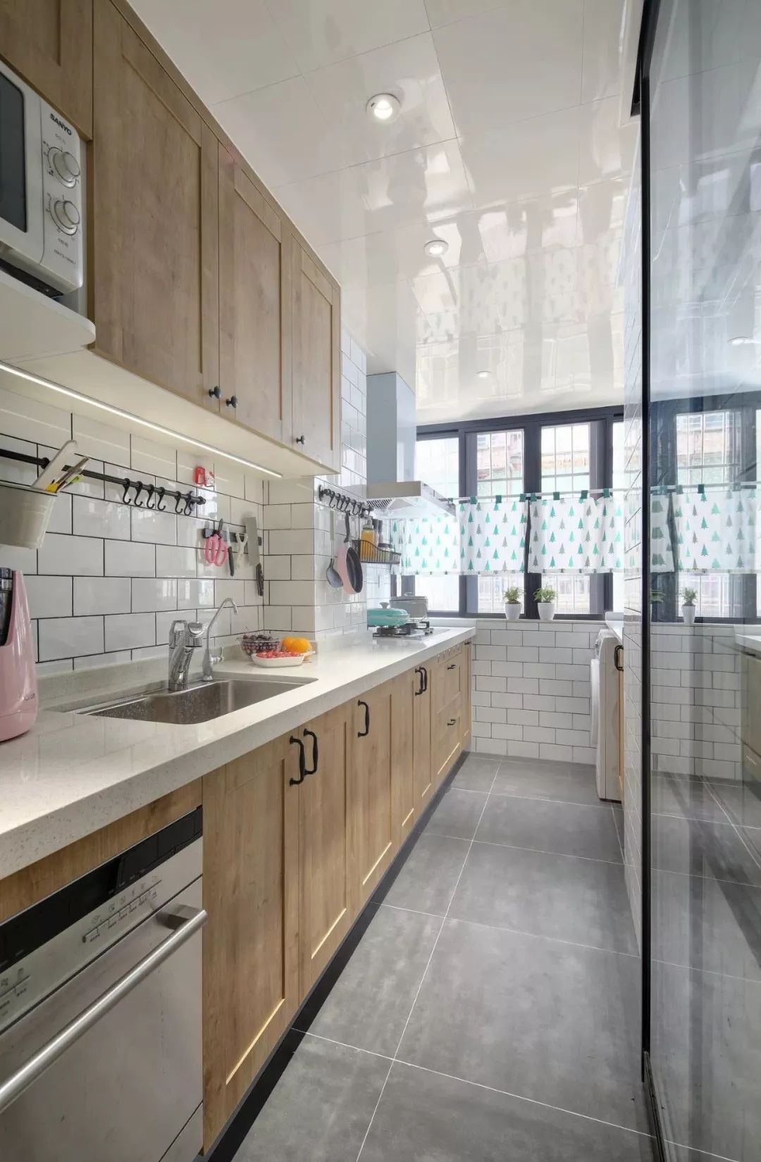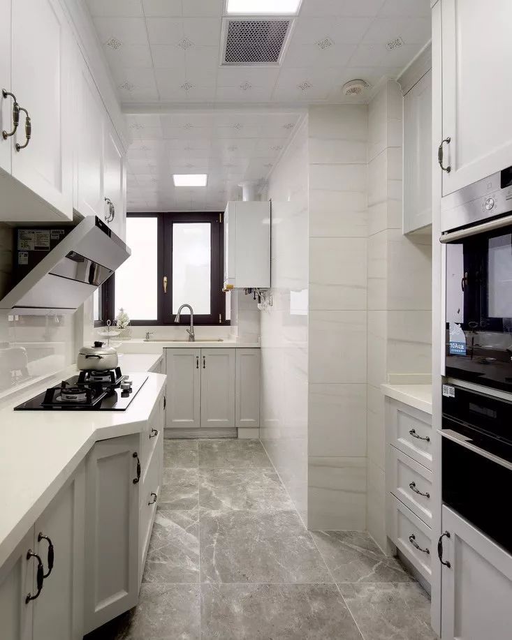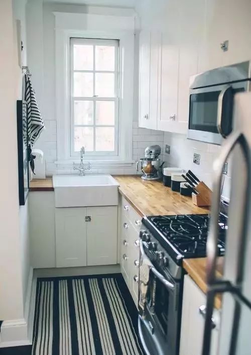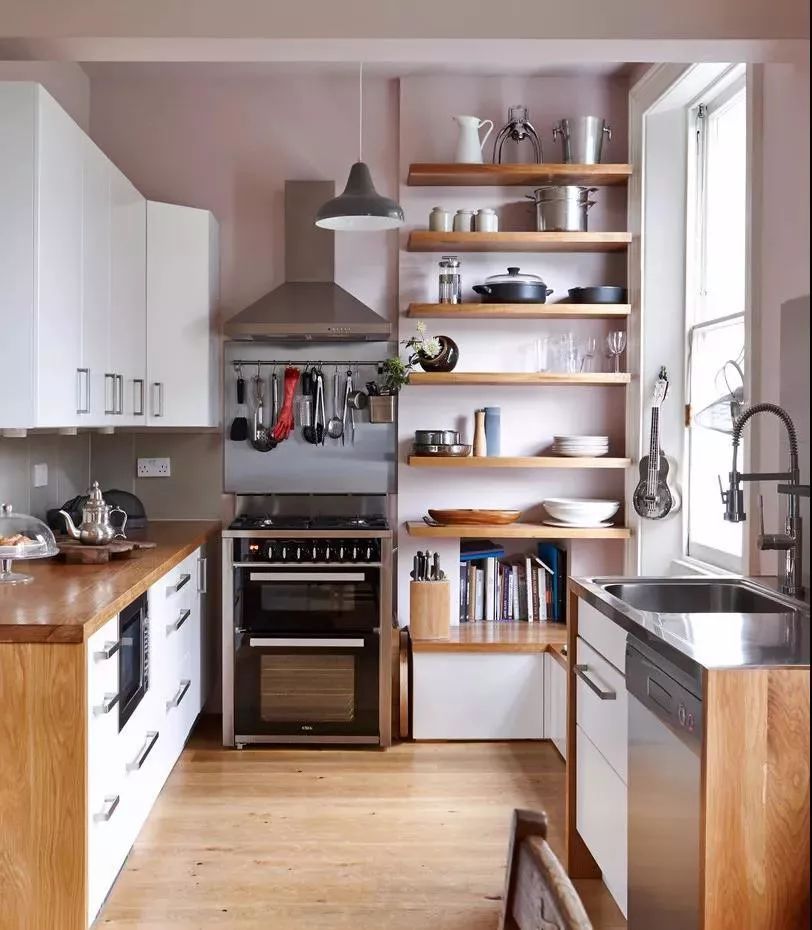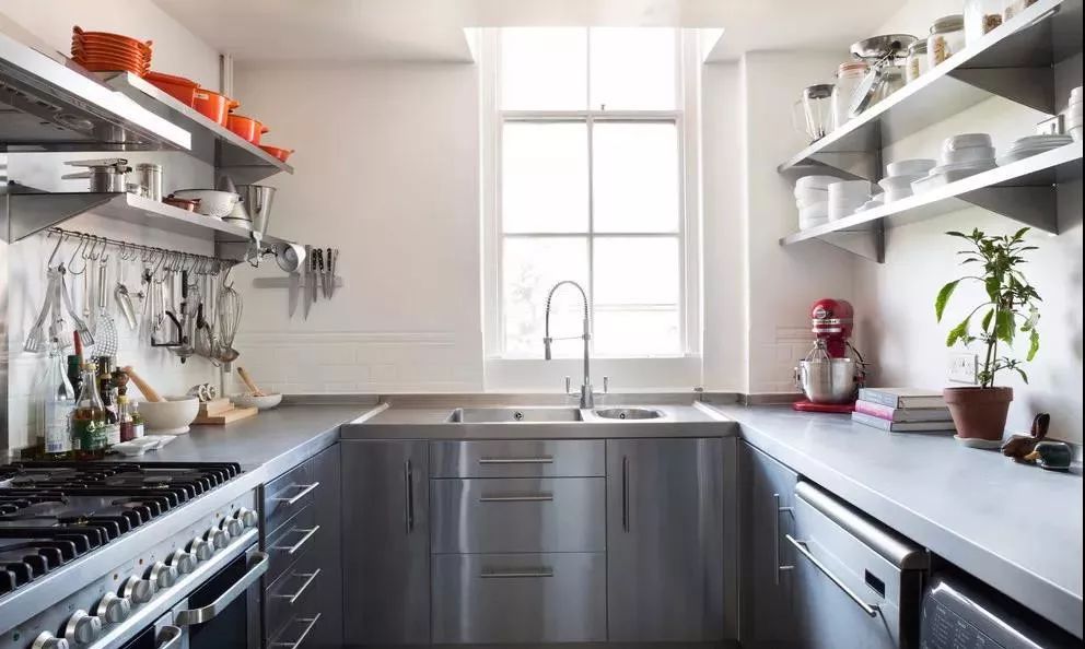 不過如果廚房實(shí)在是太小了,還是考慮減少一邊的櫥柜,做成雙一字型或者L型吧。