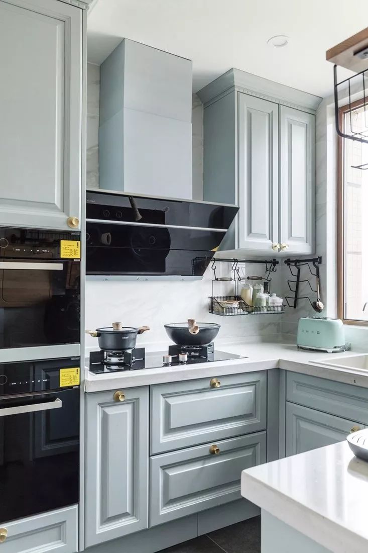 本來廚房就狹小擁擠,如果電器的擺放位置不好好規(guī)劃,把微波爐、烤箱等直接放在操作臺(tái)面上,無疑是非常占地方的,會(huì)讓廚房顯得更加擁擠不堪。這時(shí)候可以考慮廚房電器內(nèi)嵌,節(jié)省了不少空間。