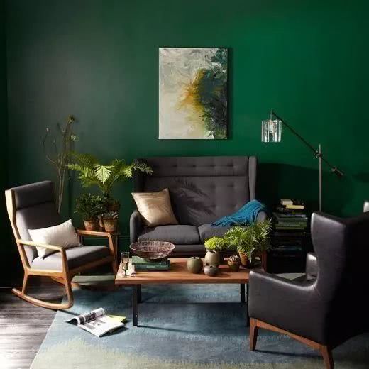 深綠一般用的是墨綠和孔雀綠,經(jīng)典又復古。而且,別看深綠色濃重,它還有減壓的效果,歐美劇院的休息室,通常就用深綠設計,能夠緩解演員登臺前的焦慮感。
