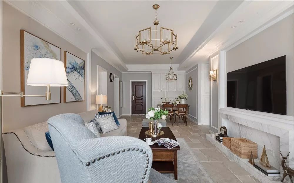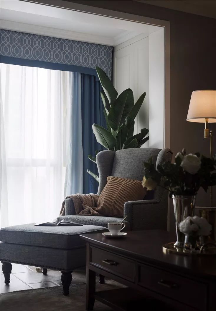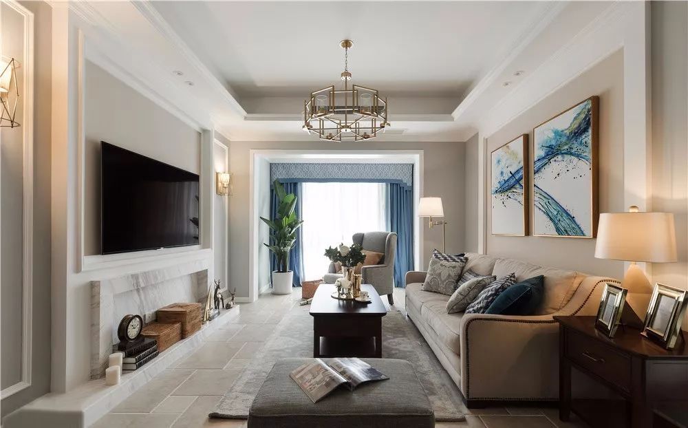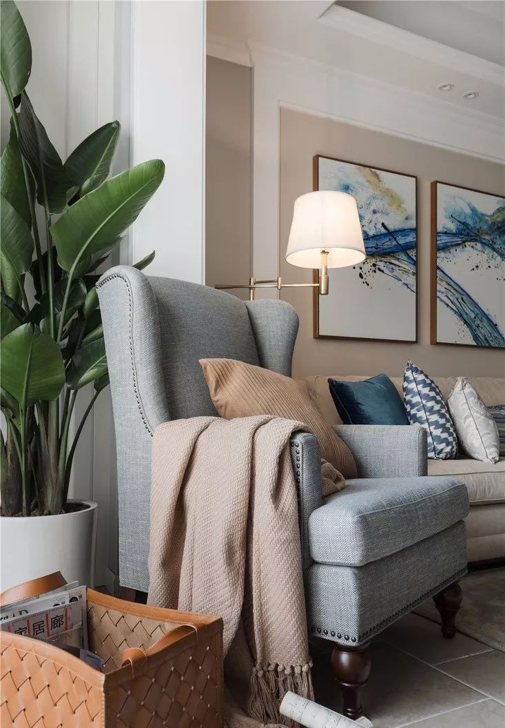▲ 客廳,設(shè)計(jì)師根據(jù)家具的尺寸、材質(zhì)、色調(diào)來(lái)挑選搭配軟裝,使得客廳的整體環(huán)境和諧統(tǒng)一,體現(xiàn)出美式家居的魅力。