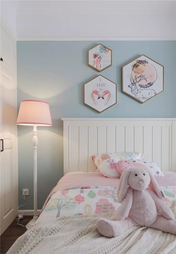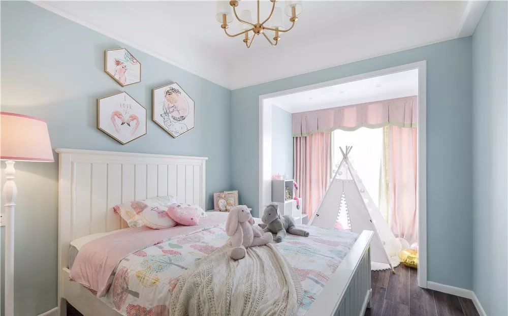 ▲ 兒童房以粉藍(lán)色墻壁為主,淡粉色作為軟裝,既溫暖又充滿(mǎn)了夢(mèng)幻與治愈感。