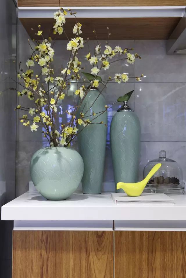 在廚房的臺面上擺著禪意精致的花瓶,讓廚房顯得很生動(dòng)有趣。