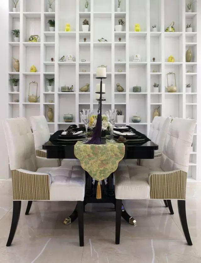 餐廳靠著一整面的展示架,上面擺滿了精致高檔的中式玩物,讓餐廳充滿了高檔寓意的感覺。