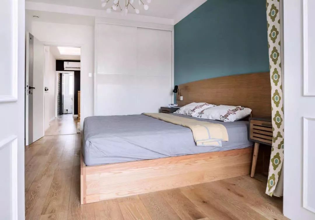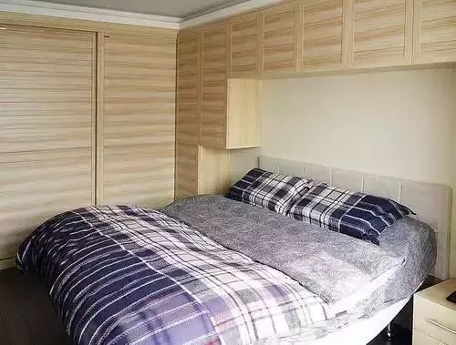 ▲衣柜和床頭背景墻更是結(jié)合起來做了柜子,把整個臥室大半的空間都給用上了,原木色的柜體也更不會讓人感覺壓抑。