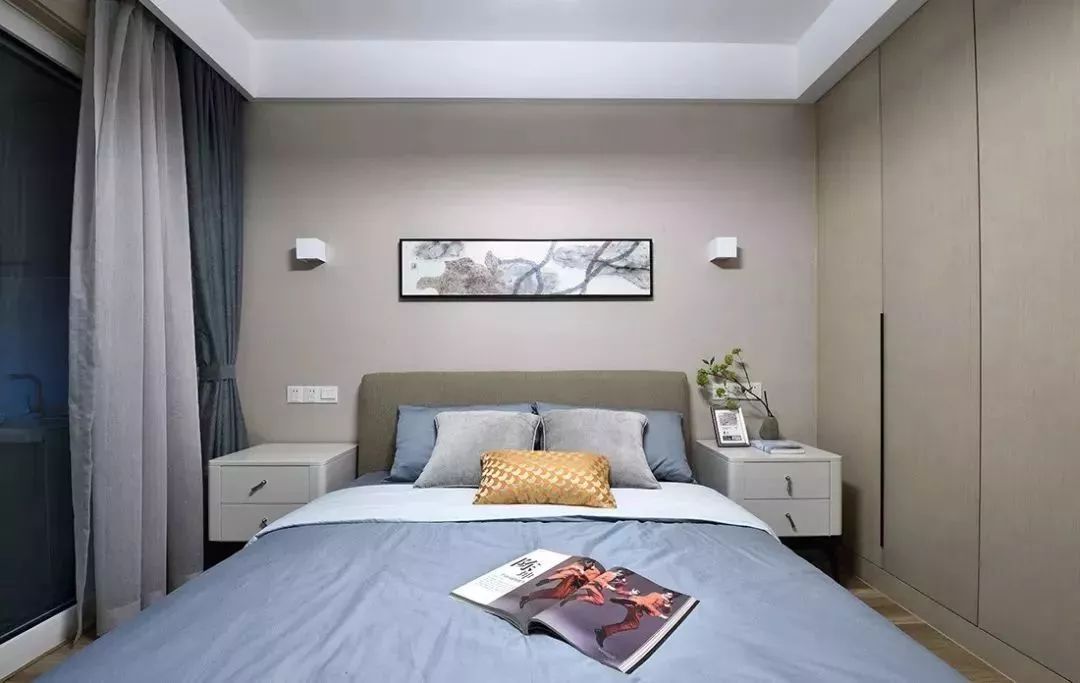 ▲溫馨的米色的背景墻搭配一幅簡約的掛畫,床頭兩側(cè)擺放高腳、懸空的床頭柜,再加上到頂?shù)那度胧揭鹿瘢麄€臥室顯得緊湊而又實用。