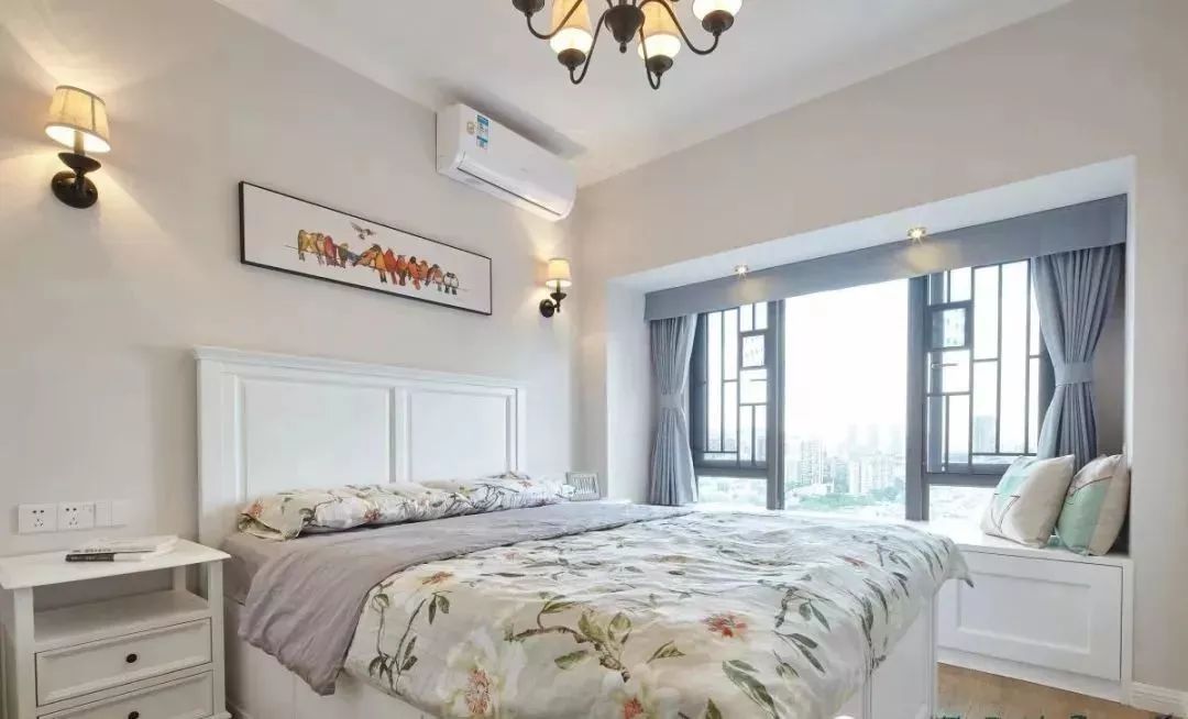 ▲簡單明亮,白色衣柜白色的床,最為干凈明亮的樣子,也不需要其他的裝飾。一整面墻的衣柜,大大的保障了家人衣服的放置空間。飄窗底部的柜子也很好的增強了儲物功能,還節(jié)省了不少空間。