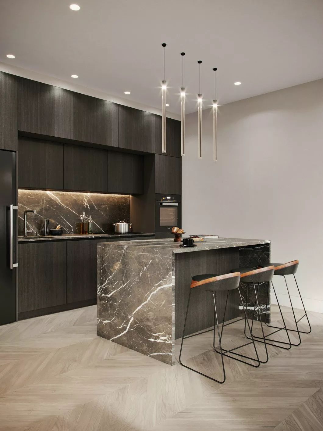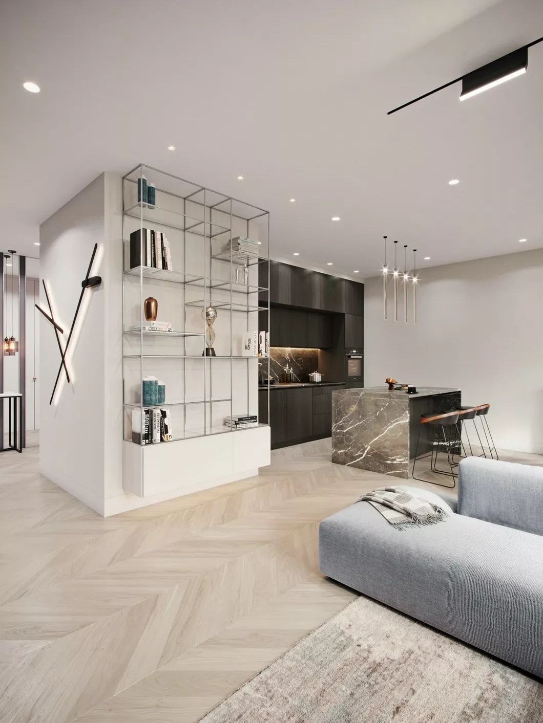 極簡風格往往采用淡雅的原木材質,融合簡單利落的黑色線條、富有肌理感的水泥墻、大理石等元素來提升空間氣質,給人帶來眼前一亮的視覺效果。