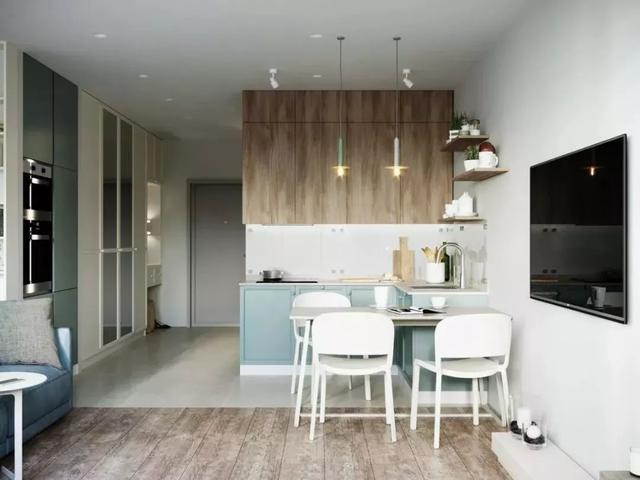 整個廚房就可以開放式的形式展示在空間內,或是過道、或是小廚房,總體來說這種開放式廚房的設計,往往更適合面積較小的剛需小房子,可以在不占用太多空間的基礎實現(xiàn)廚房功能。