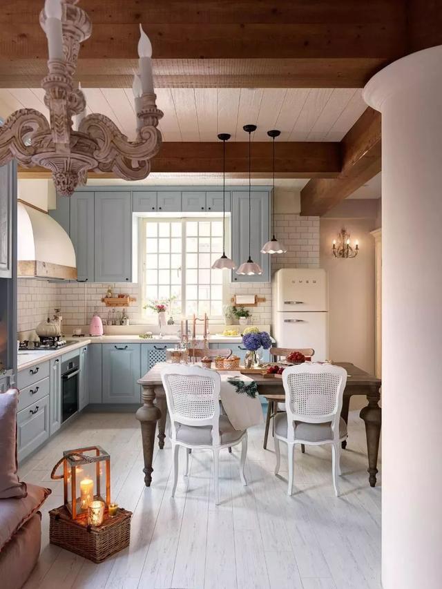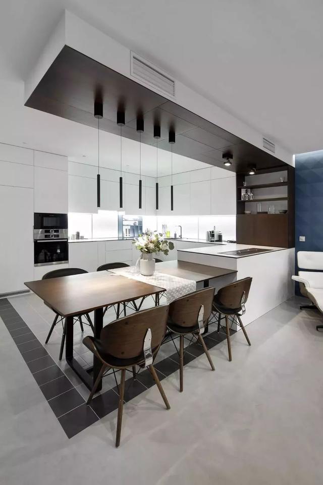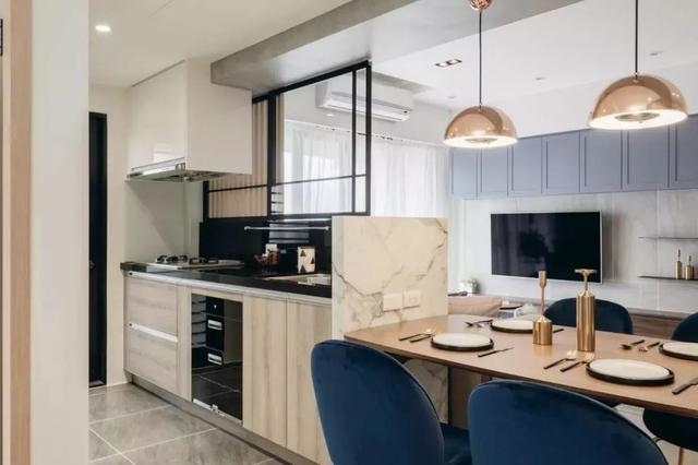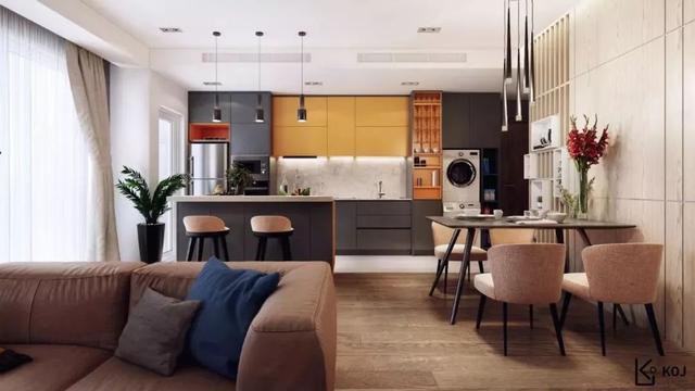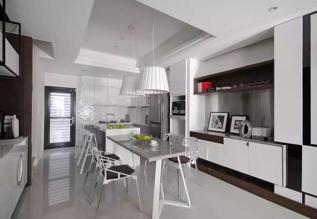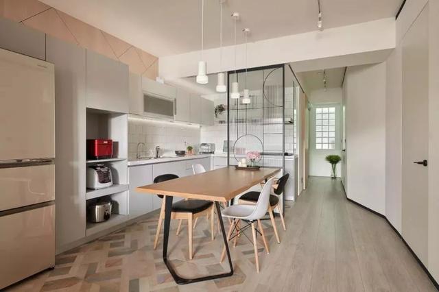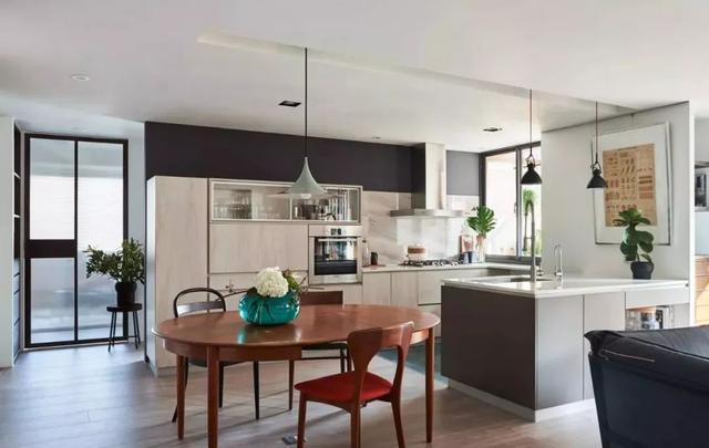 把廚房與餐廳打通一體來規(guī)劃設計,這會讓餐廳廚房都顯得更加寬敞舒適,適合大多數(shù)人家的戶型情況。