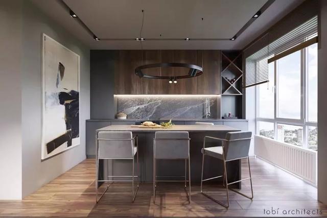 開放式的廚房基礎,裝一個中島臺隔出廚房與餐廳區(qū)域,這樣可以增加餐廚互動,老公炒菜、老婆在中島臺準備料理,讓家人共同參與烹飪的樂趣,比較適合面積較大的戶型。