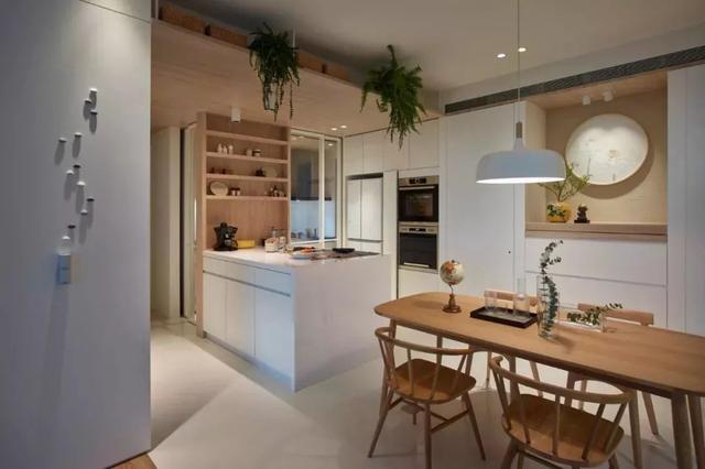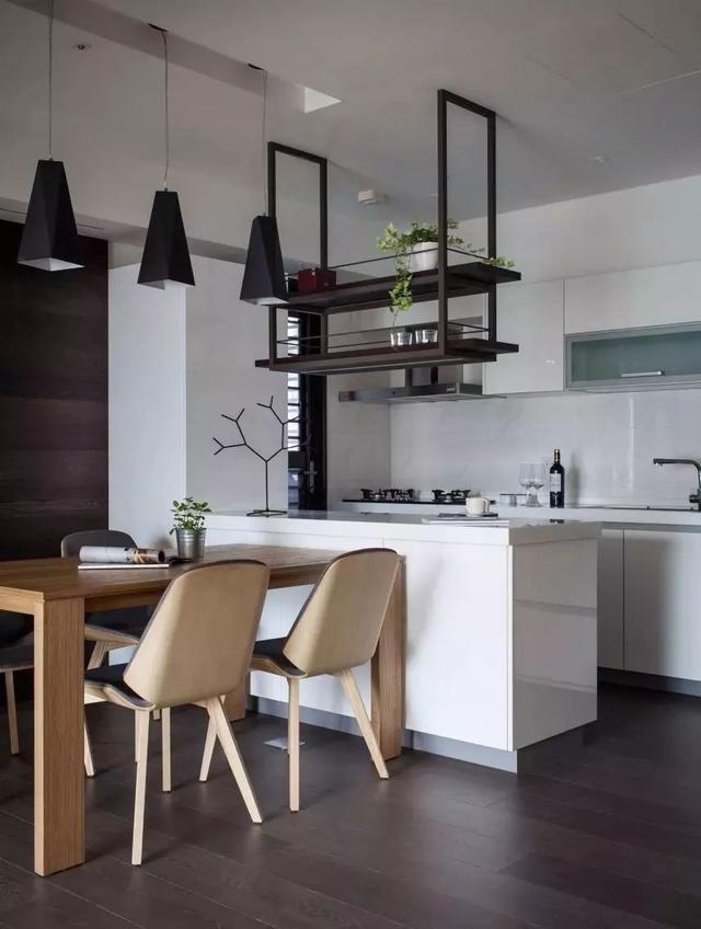 廚房是個容易雜亂的空間,做成開放式的話,意味著你需要對收納、清潔都有著明確的規(guī)劃,否則會把雜亂的視覺帶入到客餐廳。