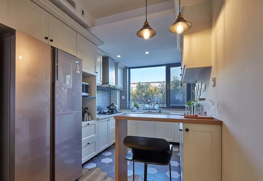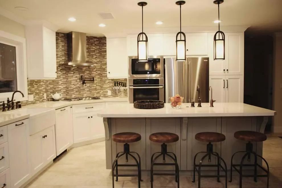 廚房的燈具,人們更注重其實(shí)用功能性,要求能照明,不占空間最好!所以廚房燈具盡量不要把它打扮得過(guò)于花哨,最好還是選擇本身自帶燈具的櫥柜。從節(jié)能上考慮,不要安置太多的燈具。一般不使用吸頂燈,因?yàn)樗痪酃?,只有散光,所以不宜在廚房中安裝。光源盡量選擇偏暖光,這樣的光線很美觀。