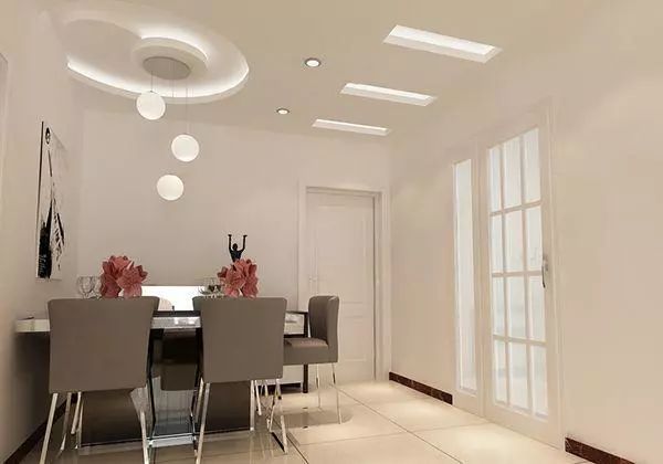 如果餐桌是圓形的,除了可在正上方裝設(shè)長(zhǎng)線吊燈外,還可在天花板上安裝一圈隱蔽試的下照燈作為輔助光源。如果對(duì)用餐時(shí)氣氛比較講究,可選擇亮度能夠自由調(diào)節(jié)的壁燈作為餐廳燈具。