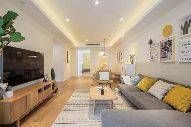 這個(gè)房子的套內(nèi)面積大概110平米,整體以簡(jiǎn)單舒適的空間,加入原木簡(jiǎn)約的柜體與軟裝搭配,整體暖系的墻面空間,加上細(xì)節(jié)綠植與彩色的軟質(zhì)點(diǎn)綴,營(yíng)造出一個(gè)溫馨舒適的畫面。