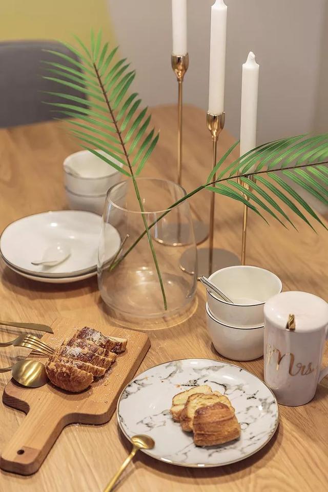 ▲餐桌上雅致的餐具與小點(diǎn)綴綠植,透露出主人對(duì)簡(jiǎn)約舒適生活的向往。