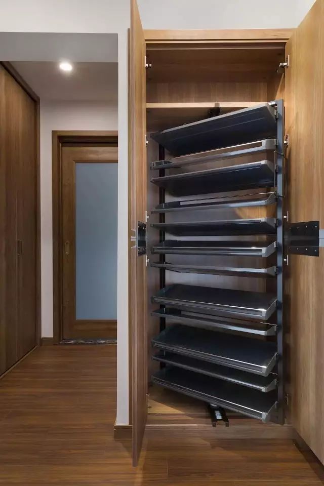 為了解決鞋子的煩惱,許多人會選擇盡量將玄關(guān)鞋柜做大,但最終的成效還是不大,而有一種鞋柜,則采用旋轉(zhuǎn)樣式,最小節(jié)省空間面積,可以多放N雙鞋。表面看鞋柜外觀與普通鞋柜無異,精妙之處在于內(nèi)部旋轉(zhuǎn)鞋架的設(shè)計。
