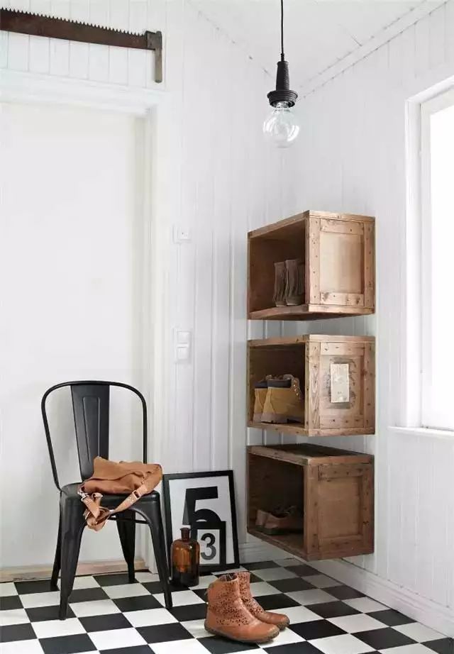 在滿足收納功能的同時也增加了趣味性,可以放置不同高度的鞋子,也可以在進(jìn)門處設(shè)計一個換鞋凳子方便更舒適的換鞋。