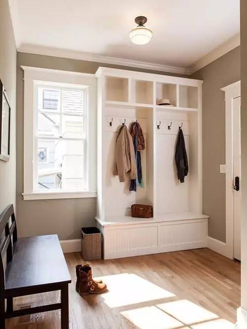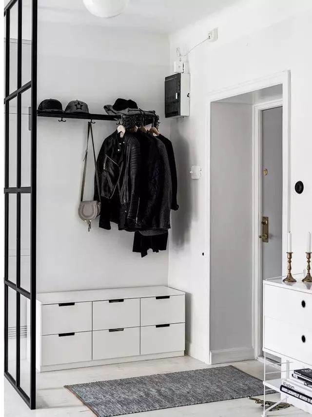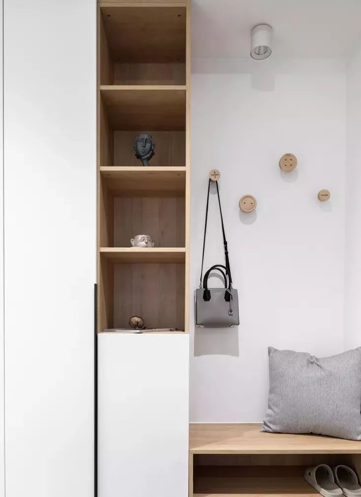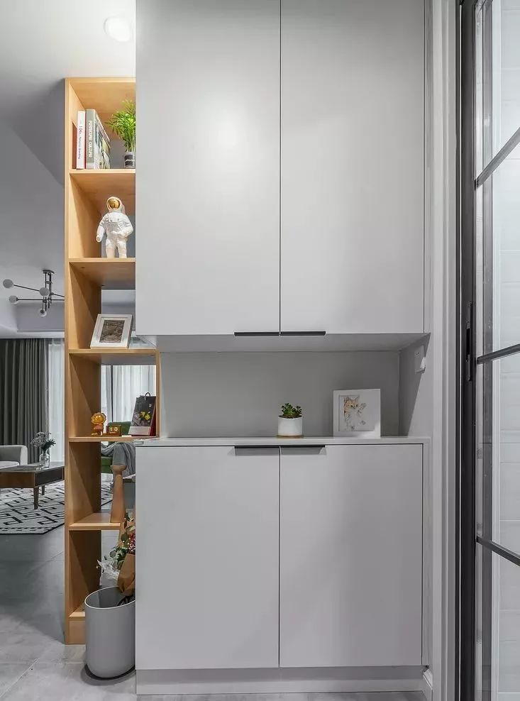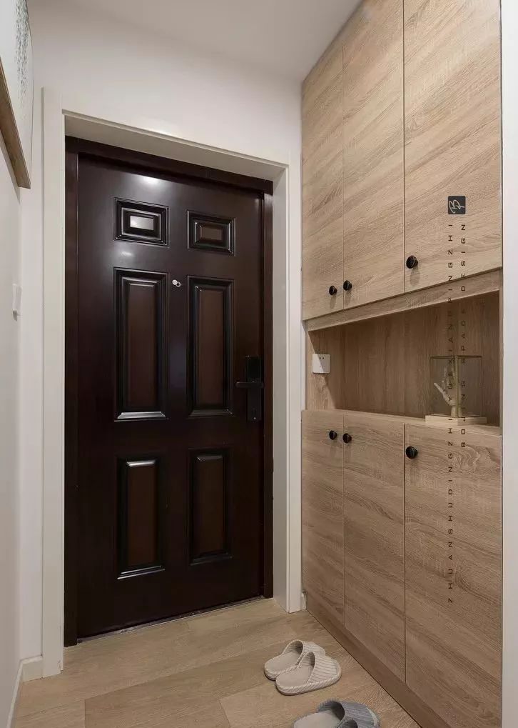 入戶門廳是一個必不可少的功能區(qū),除了產(chǎn)生視覺屏障,有利于內(nèi)外過渡之外,它還是收納鞋子、包包和衣服的重要場所。
