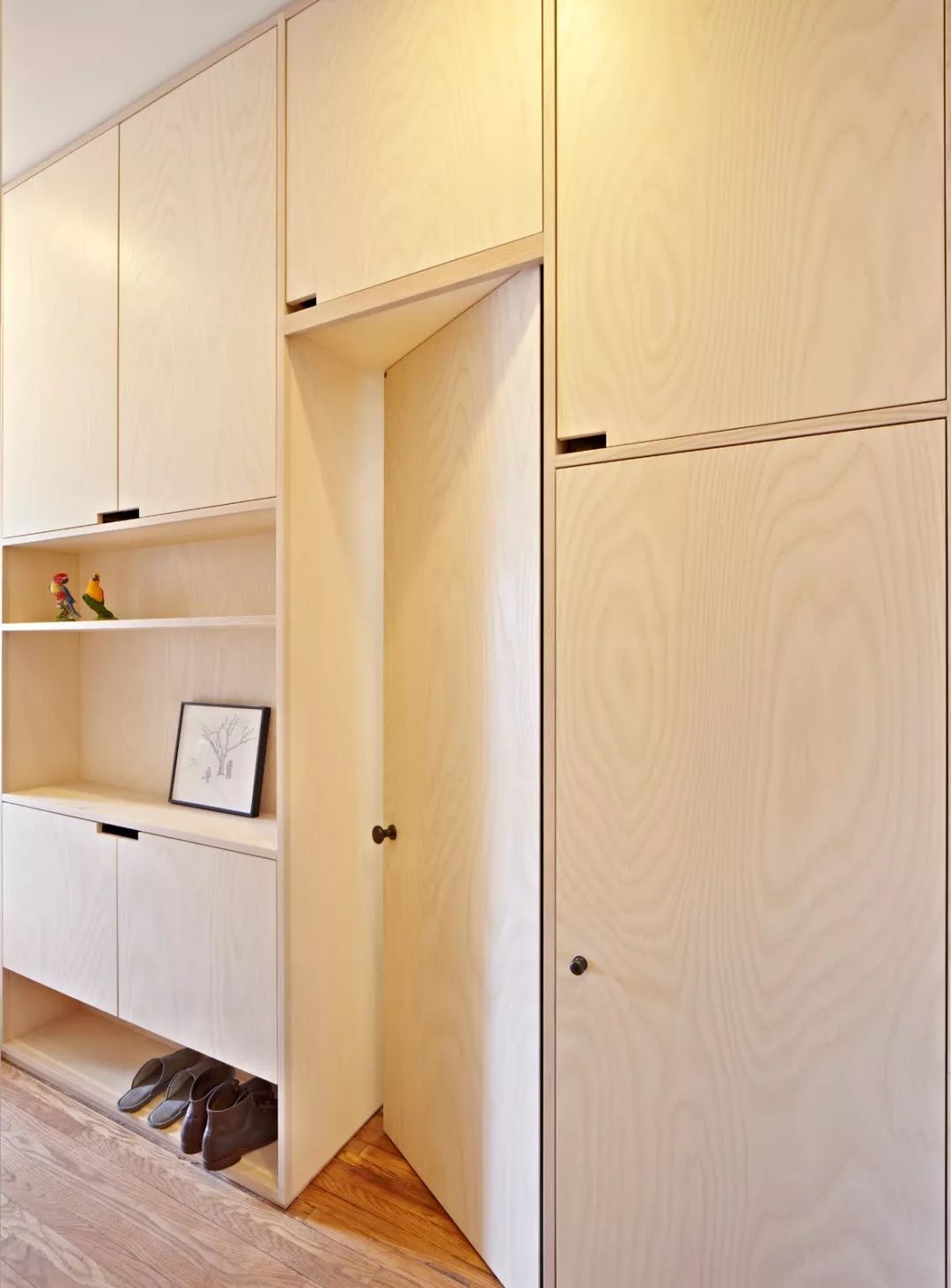 ⑥玄關(guān)較窄的,建議鞋柜裝推拉門,平開門用起來很不順手。