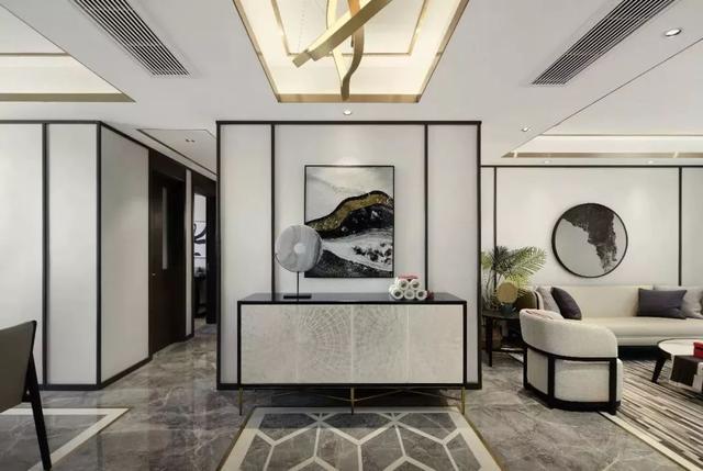 這種通常是進(jìn)門(mén)兩側(cè)是客餐廳的戶(hù)型,這個(gè)空間通常都比較大,要做吊頂?shù)脑?huà),主要是做客餐廳的過(guò)渡,同時(shí)在門(mén)口區(qū)域做個(gè)留空的藏?zé)魠^(qū),讓空間界分明顯而又有層次感。