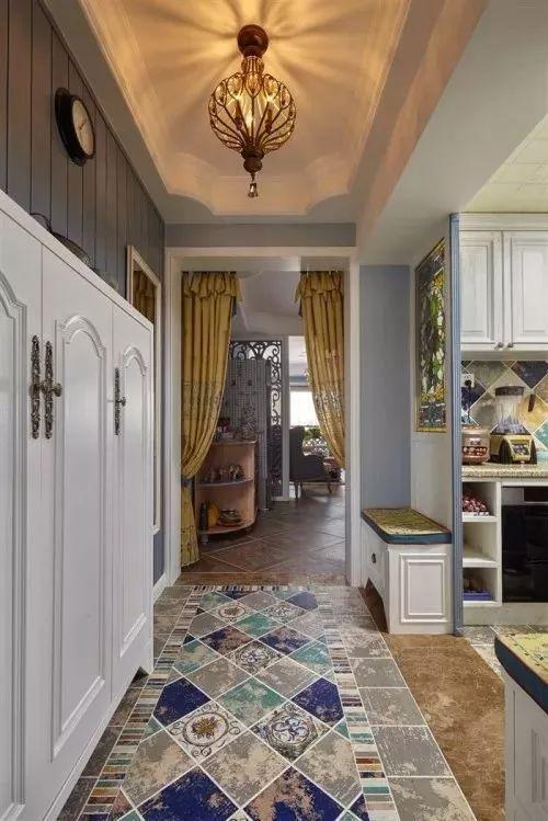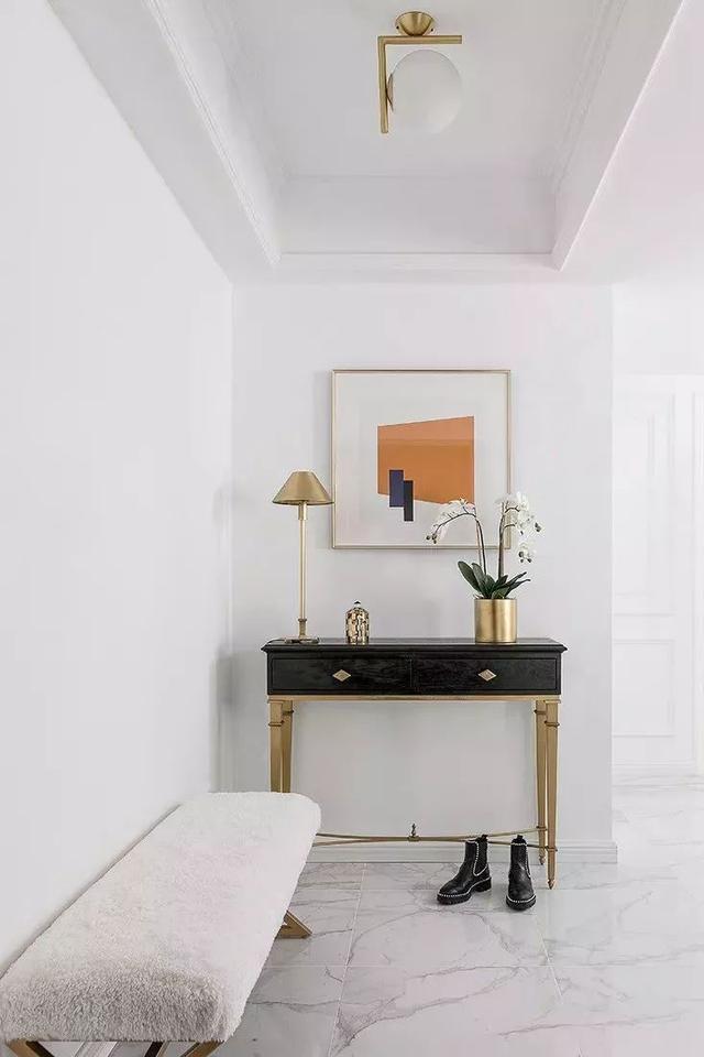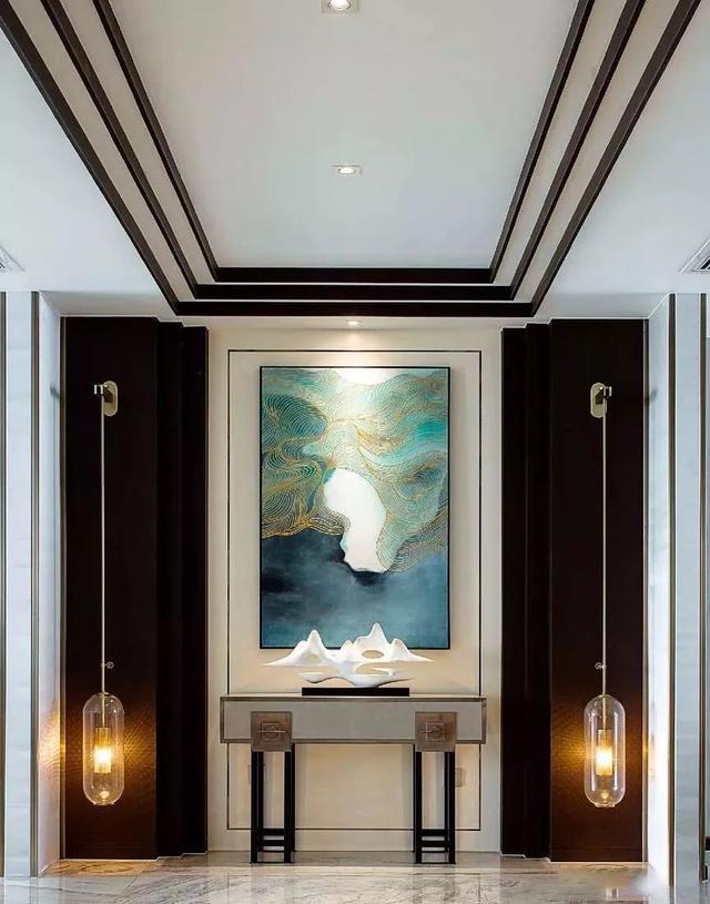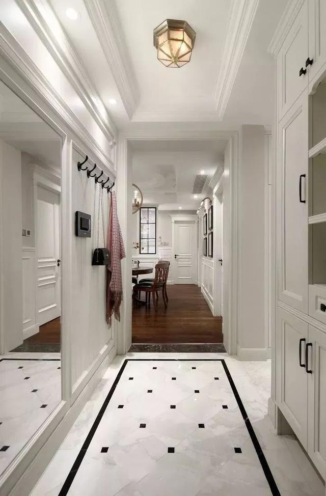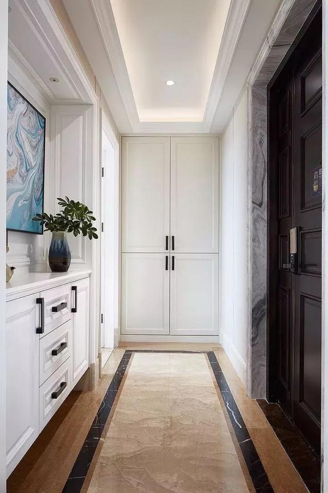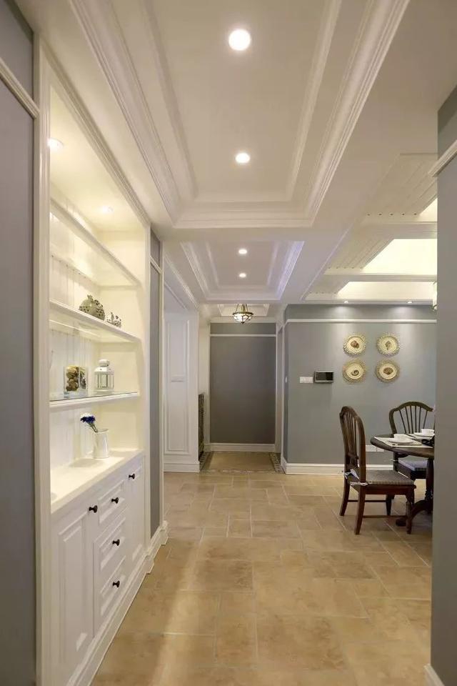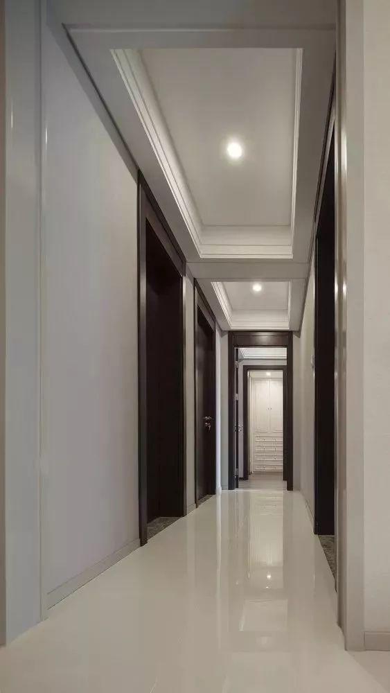 比較常見(jiàn)的玄關(guān)走廊吊頂方案是在四周吊頂,然后中間留空并根據(jù)空間搭配裝上吊燈或則在吊頂造型里面暗藏?zé)魩?,讓空間層次豐滿(mǎn)而又有優(yōu)雅的空間感。