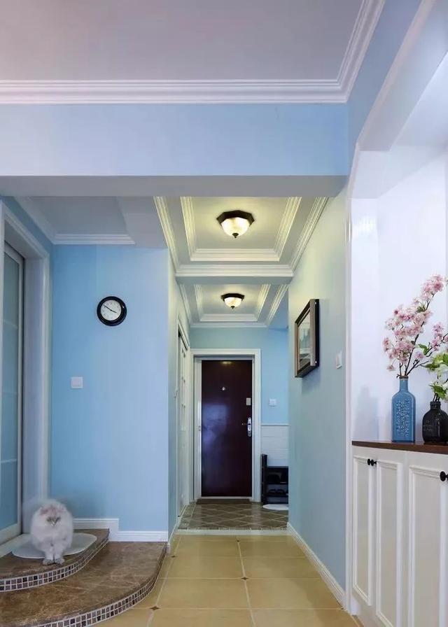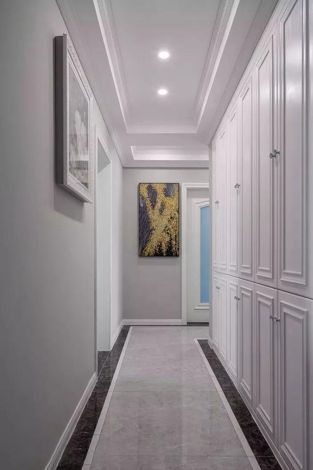 對(duì)走廊玄關(guān)這樣的小空間而言,直接把整個(gè)空間都吊平頂,并在吊頂里面嵌入筒燈照明,這樣簡(jiǎn)潔大方的設(shè)計(jì),彰顯著獨(dú)特優(yōu)雅的檔次。