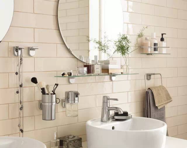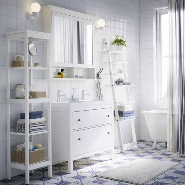 如果嫌浴室東西太多容易亂,干脆像這樣擺兩把架子,一切都整齊了。