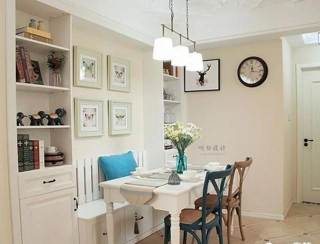 藍(lán)白相間的餐廳,特別適合小戶型。