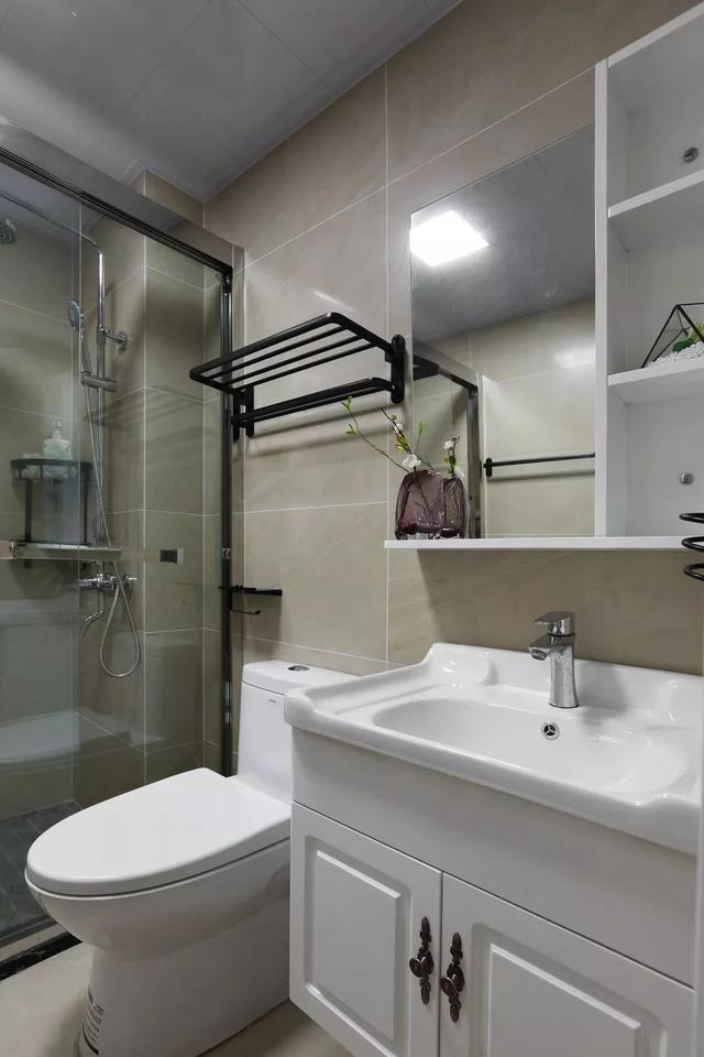 ▲衛(wèi)生間整體簡潔為主,洗手盆上方有著豐富的格架,能收納衛(wèi)浴用品,也能擺放裝飾品,使得衛(wèi)浴空間更加情調(diào)舒適。