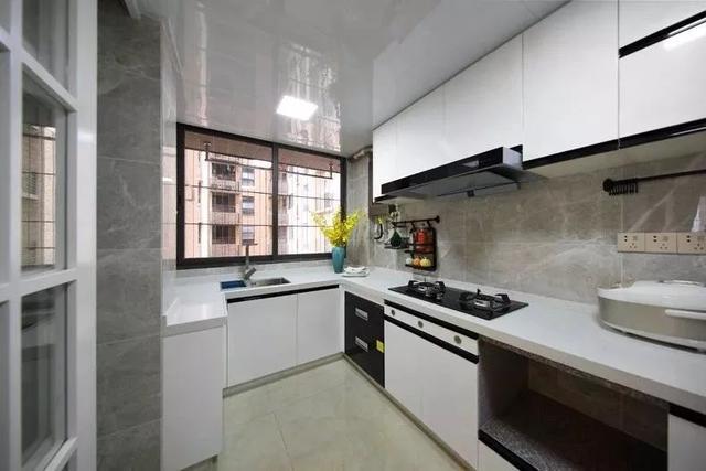 ▲廚房的J形格局,灰調(diào)的墻磚搭配白色櫥柜,墻面也裝上實用的掛架,維持了一個簡潔優(yōu)雅的烹飪氛圍。