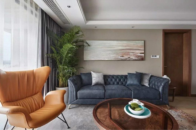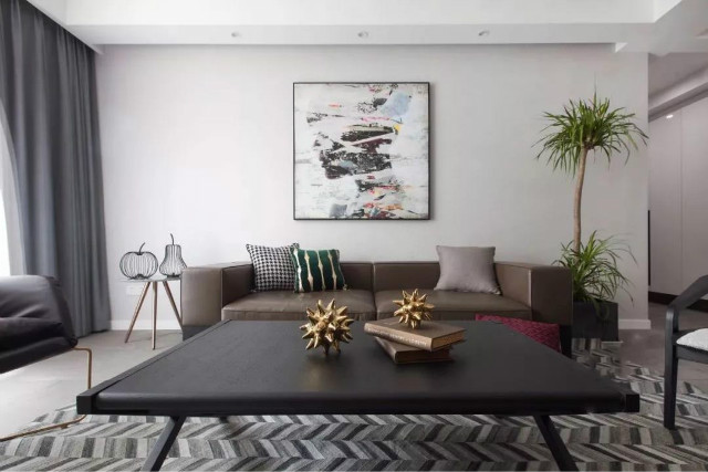 除了橫幅裝飾畫,尺寸稍大的單幅裝飾畫,掛在沙發(fā)墻的中間或側(cè)邊,也是能為客廳帶來優(yōu)雅的檔次感,尤其是掛在側(cè)邊不對稱的畫面感,更是簡潔自然,適合一些不對稱的客廳布置。