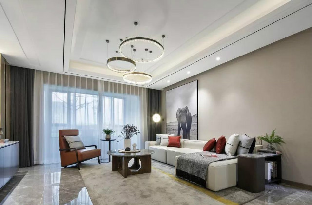 若客廳面積稍大的,也可以采用三幅軸對稱的掛畫方式,讓沙發(fā)墻更加豐滿,同時(shí)又有著精致的對稱設(shè)計(jì)感。