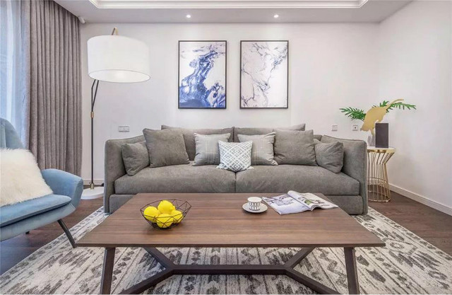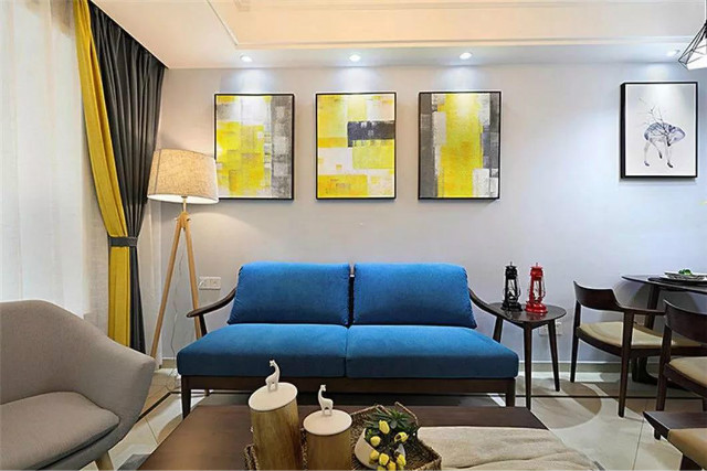 雙幅裝飾畫掛在沙發(fā)墻的情況,通常是居中對稱地掛,這樣的掛畫適合比較方正的客廳,對稱設(shè)計(jì)感比較強(qiáng)。