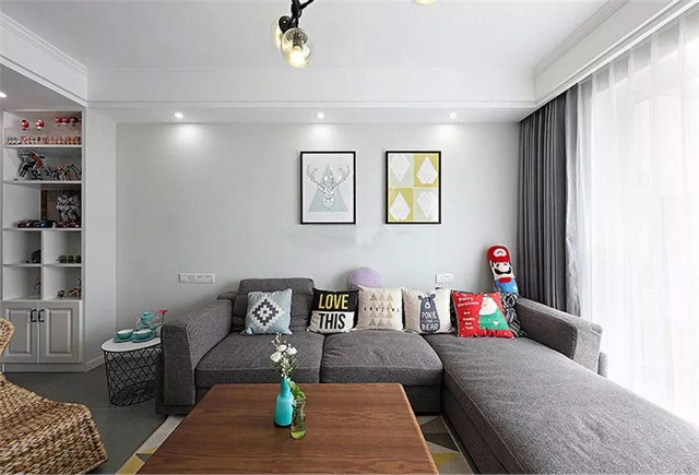 在年輕人的簡約客廳裝修中,沙發(fā)墻往往是留白的墻面,在這個(gè)空空的大幅墻面,若是不加以裝飾點(diǎn)綴,就會(huì)顯得比較單調(diào)空蕩。在沙發(fā)墻上掛上裝飾畫,雖然是也很簡單,卻也會(huì)顯得優(yōu)雅好高檔!