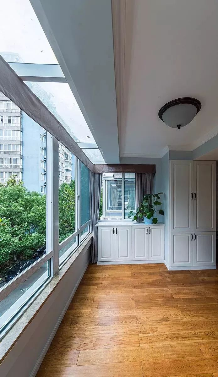 封閉陽(yáng)臺(tái),最為常見(jiàn)的就是以玻璃落地窗直接封閉陽(yáng)臺(tái),這樣既保持陽(yáng)臺(tái)的光亮,又能遮風(fēng)擋雨,非常的美觀實(shí)用。
