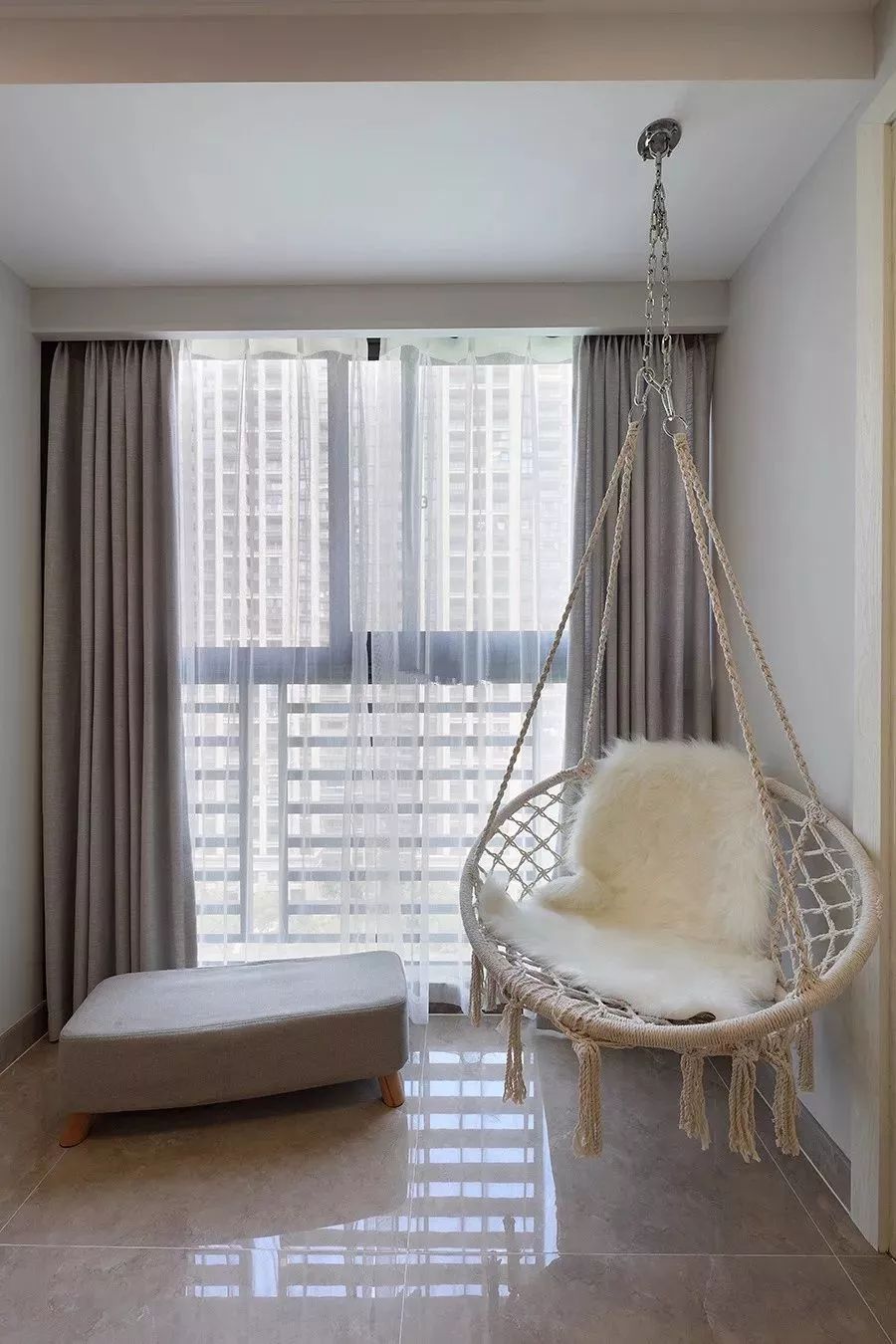 如果擔(dān)心純粹的玻璃落地窗不安全的話(huà),可以加裝一個(gè)鐵藝護(hù)欄,這樣既保持空間的通透感,又能顯得有安全感。