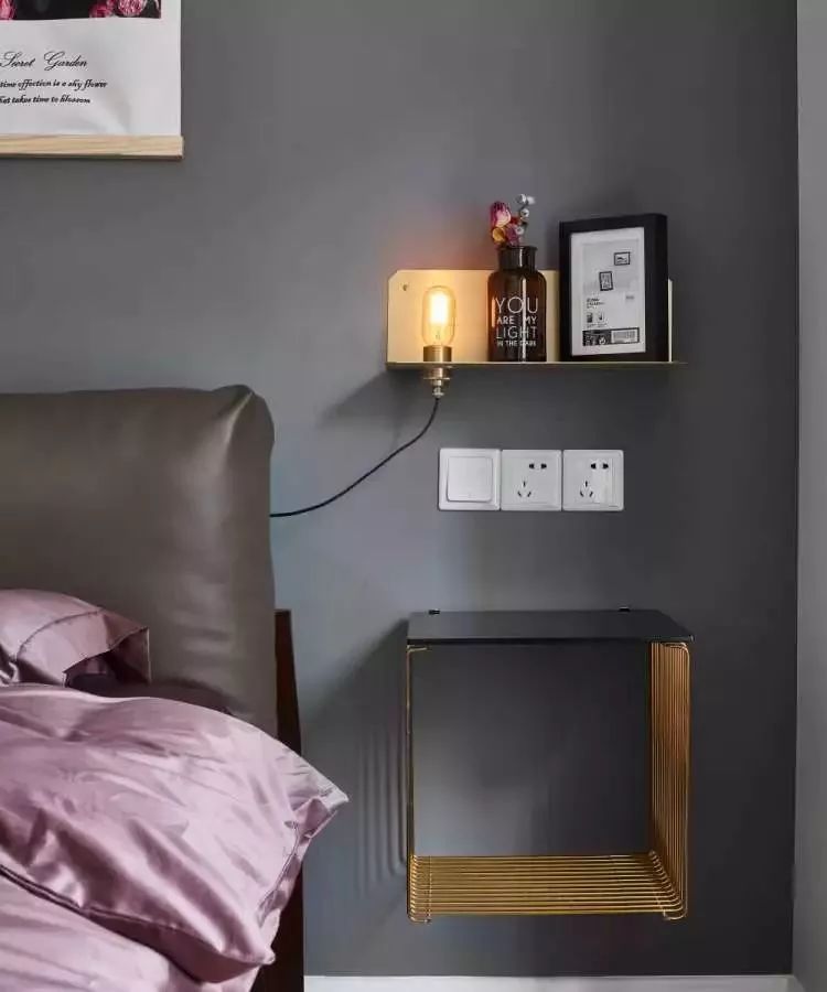 在墻上定制一根掛衣桿,或者打造幾塊造型簡易的置物擱板,懸浮式書桌,洞洞板,都是超級實用而富有創(chuàng)意的置物選擇。