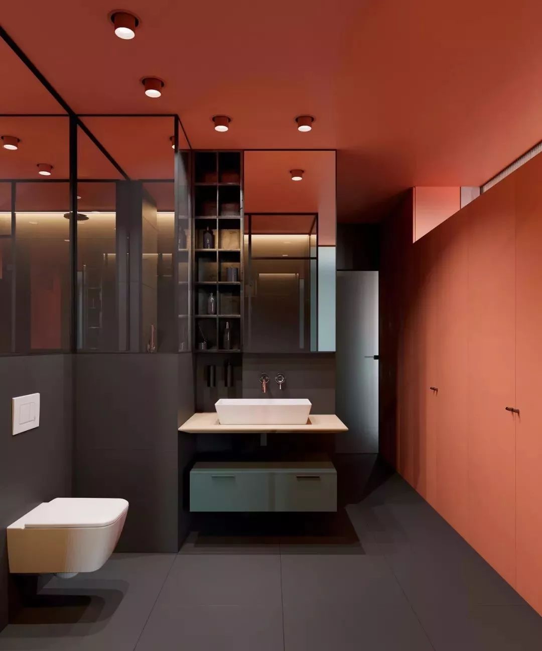將風情萬種的紅色注入衛(wèi)生間中,能夠打造出不一樣的女王氣場。它兼具時髦與復古兩種格調(diào),無論搭配白色或黑色,都能彰顯一定的高貴氣質(zhì),讓空間看起來更有層次感,好看不俗,霸氣十足。