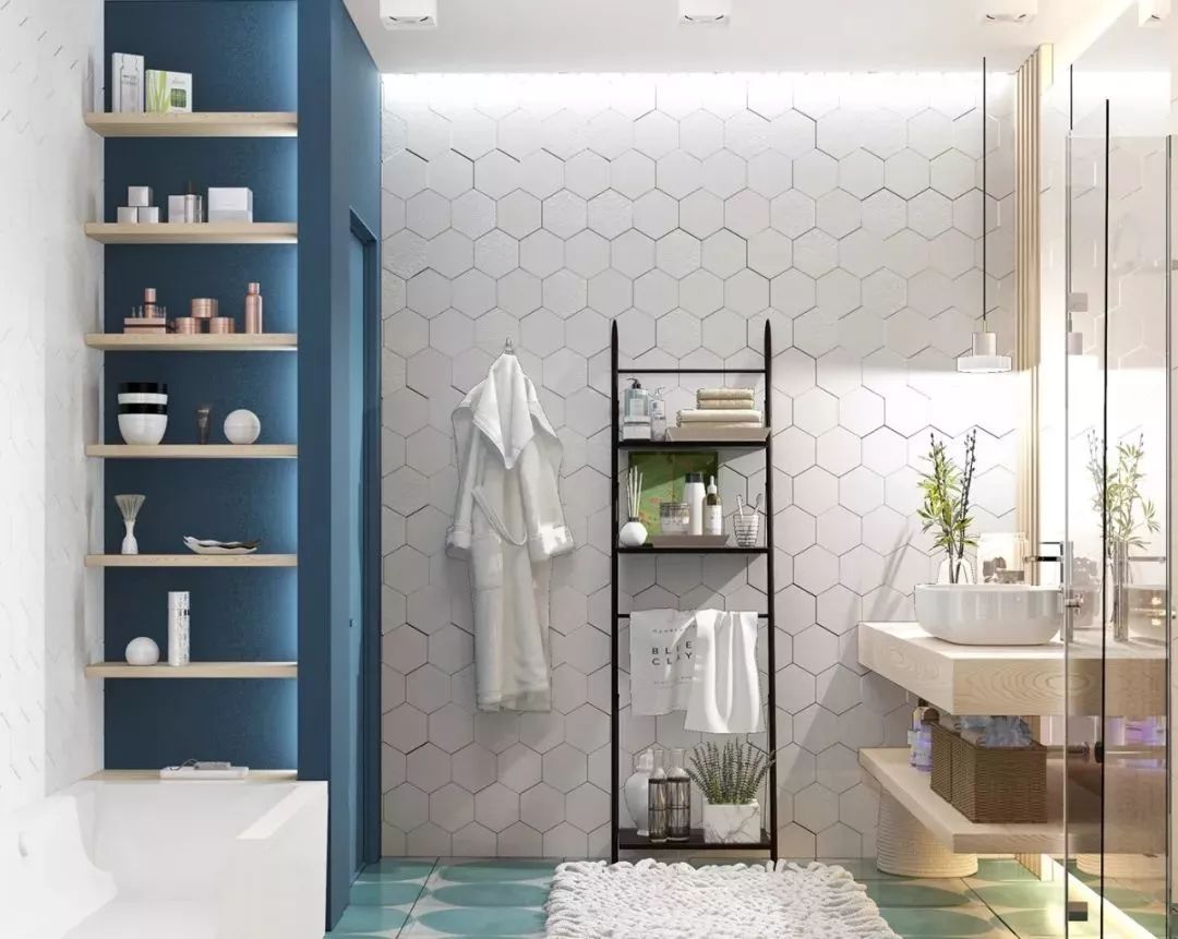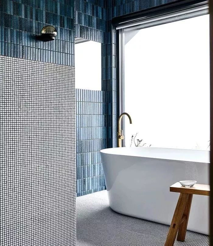 藍色,是一種冷靜而深邃的顏色,它容易讓人聯(lián)想到大海、天空、宇宙等一切神秘而浩瀚的東西。將不同的藍色運用到衛(wèi)生間中,可以產(chǎn)生不同的視覺效果。