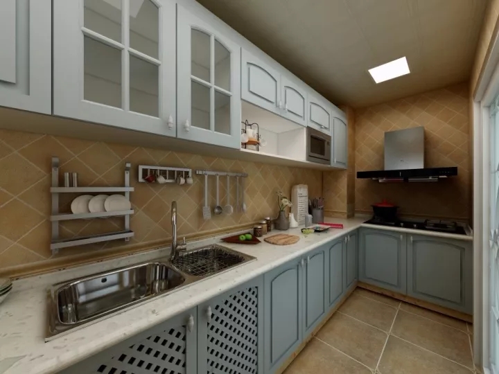 1、規(guī)劃廚房布局:L型廚房布局最節(jié)省空間,這種布局動(dòng)線(xiàn)清晰,可以形成圍合式操作區(qū),空間利用率最佳。