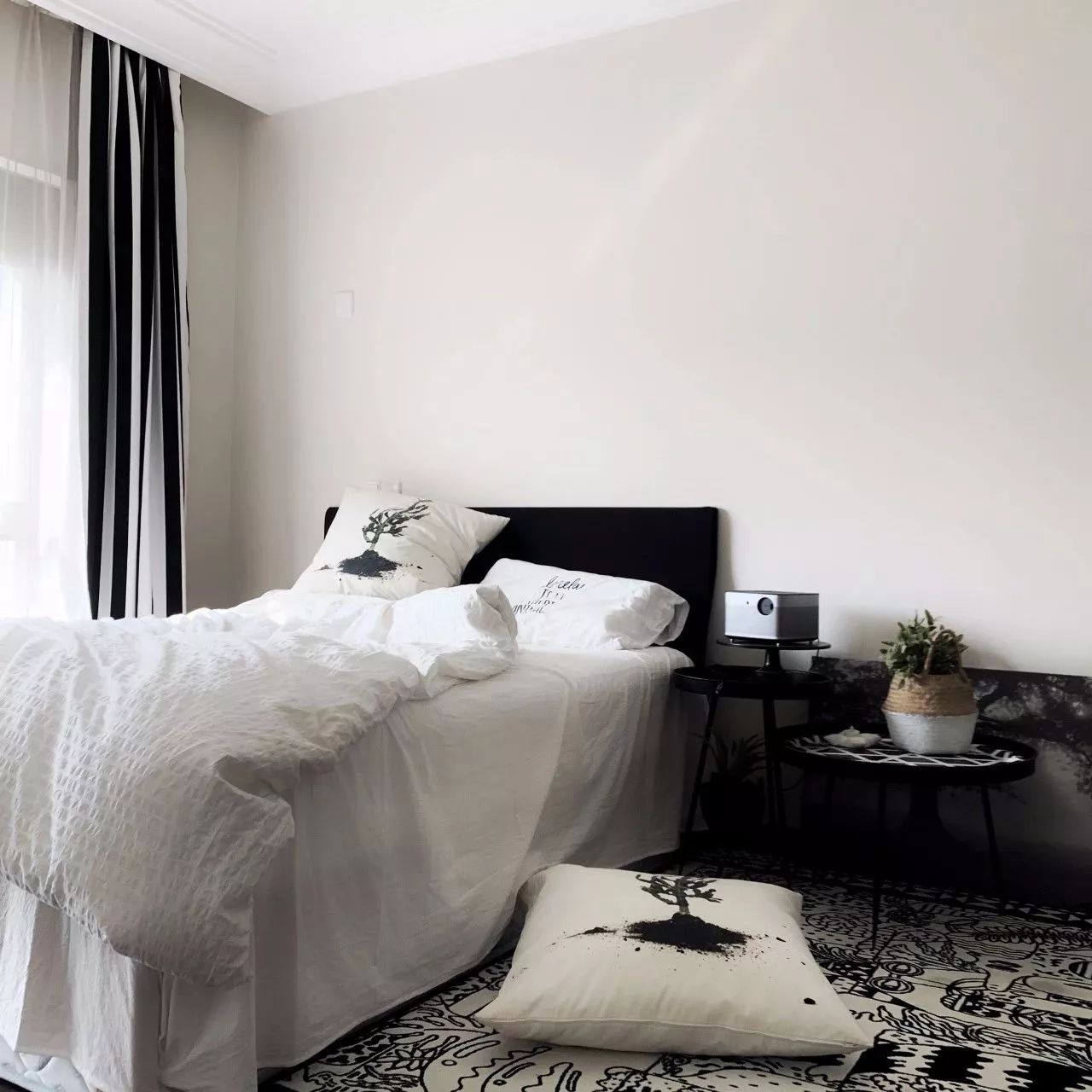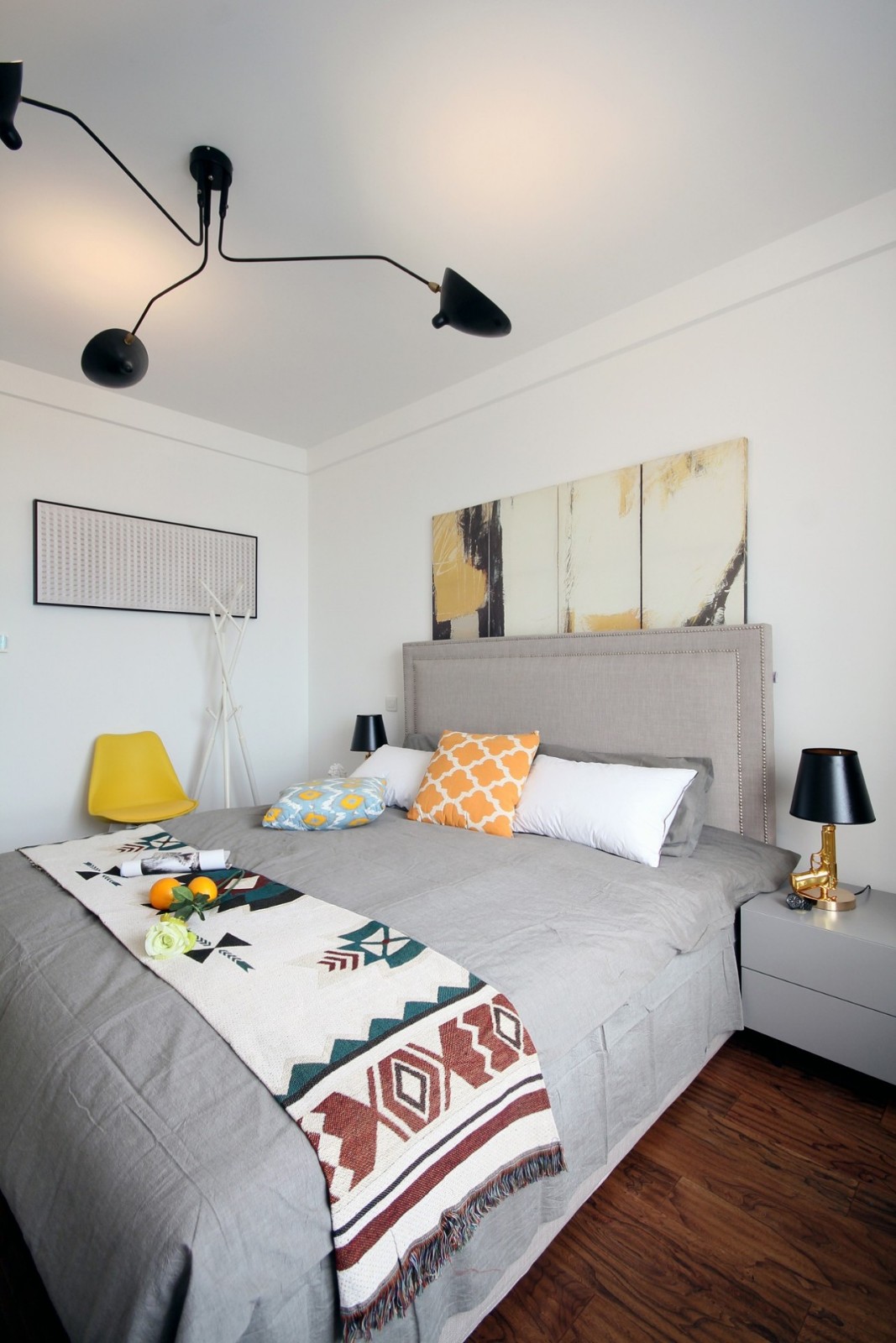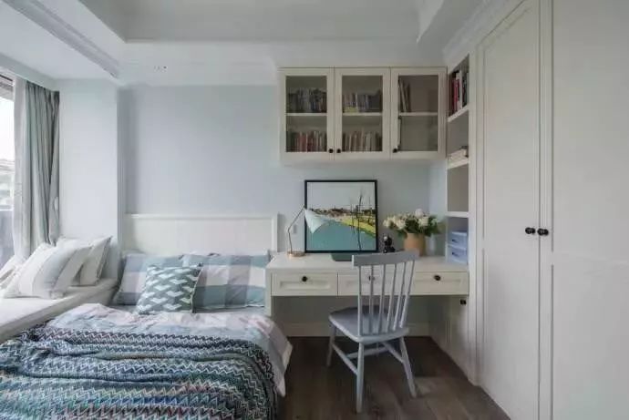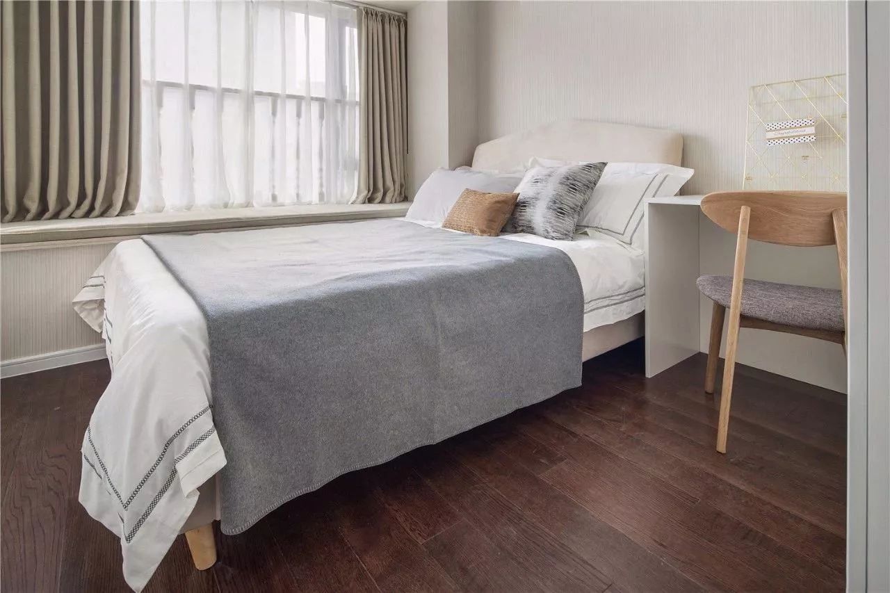 一些睡慣了床的人,可能會(huì)覺得榻榻米不夠透氣,睡著不是很舒適,所以還是堅(jiān)持要做床的,這個(gè)時(shí)候想要利用好小臥室,只能是緊湊地布置,或是取消床頭柜、或是換個(gè)小店的床。