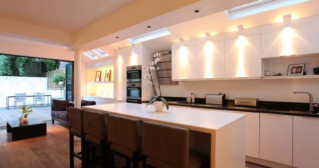 由于技術(shù)的不斷發(fā)展,LED燈已經(jīng)失去了引人注目的、幾乎嚇人的方法,現(xiàn)在當(dāng)你想要一種不同的氛圍時,它變得有用和有趣。使用LED燈來消除負(fù)面空間,照亮廚房的一個島,或直接給櫥柜照明。LED燈已經(jīng)變得相當(dāng)節(jié)能和持久;因此,無需擔(dān)心它們。